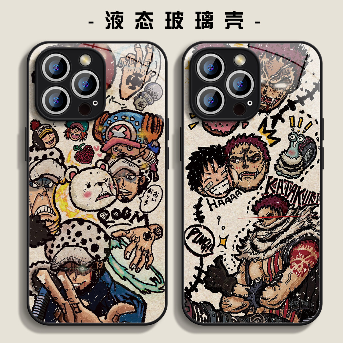 适用iPhone16promax手机壳苹果17新款12mini海贼王罗14pro液态8plus7p玻璃xr凯多xsmax潮x男14plus女6e保护套