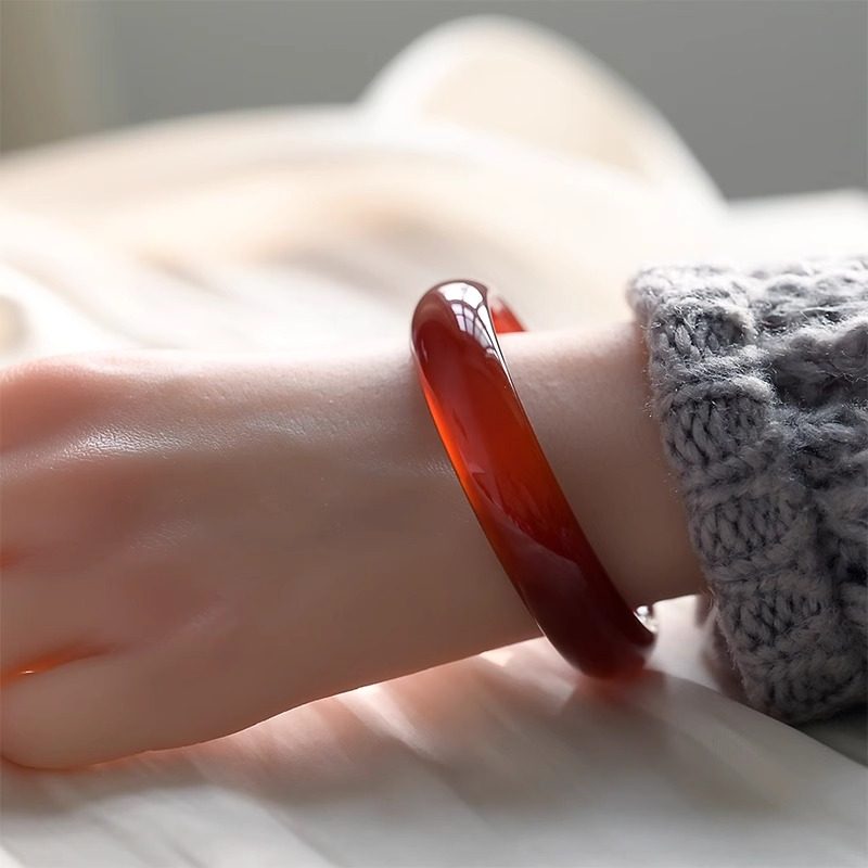 天然红玉髓手镯冰透马达加斯加红玛瑙镯子本命年红水晶南红女