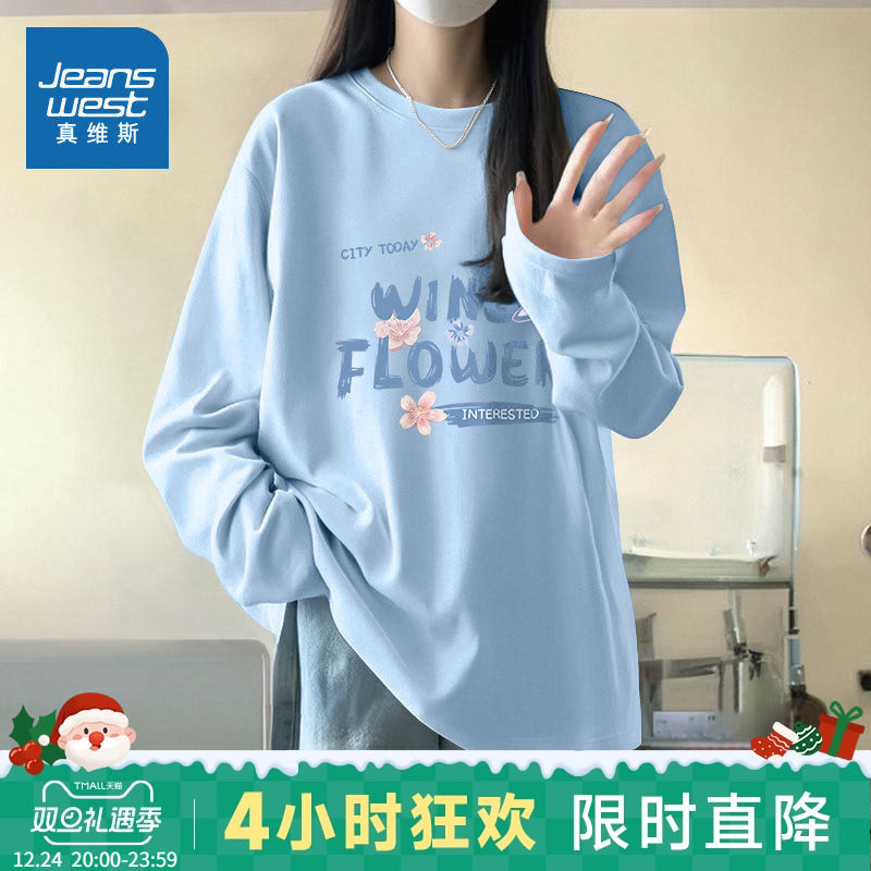 JR真维斯纯棉长袖T恤女2025新款秋季洋气内搭打底衫休闲上衣