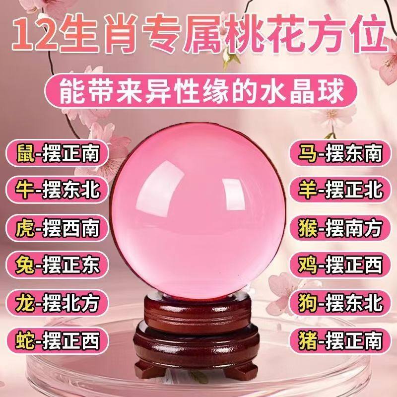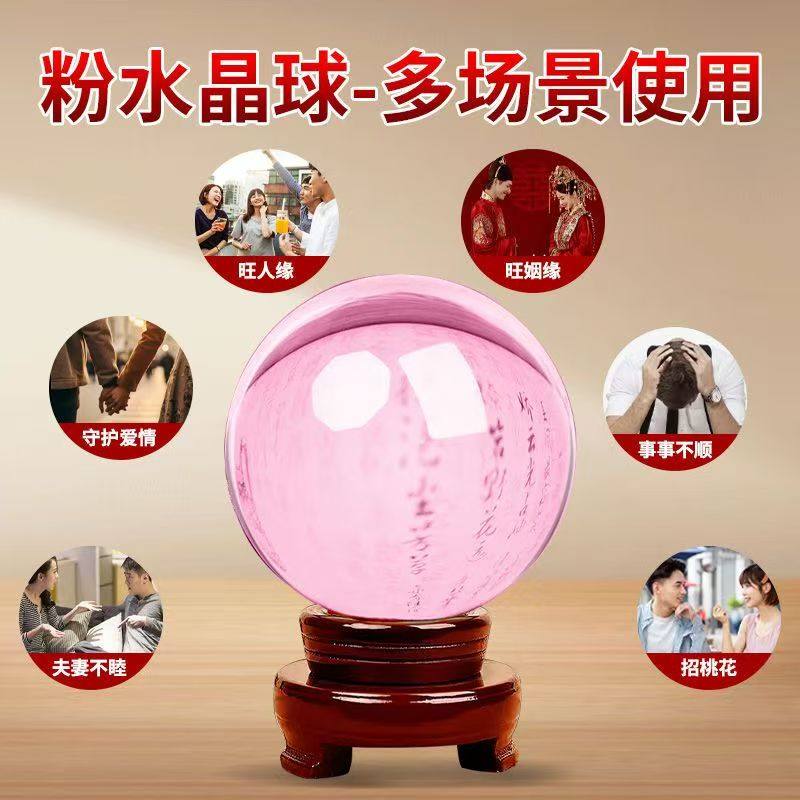 卧室水晶球摆件爱情石旺姻缘桃花运透明球粉色装饰结婚礼物生肖