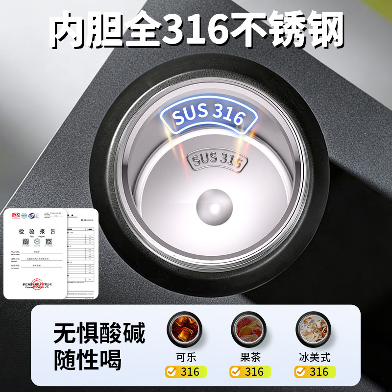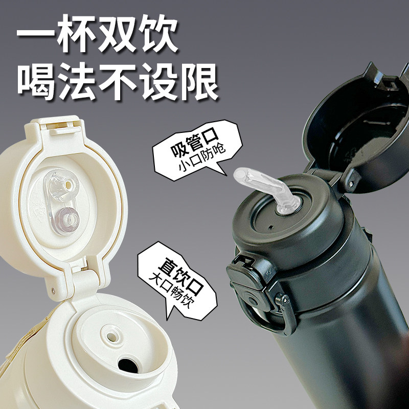 保温杯316不锈钢双饮咖啡杯大容量女高颜值随行吸管水杯情侣杯子