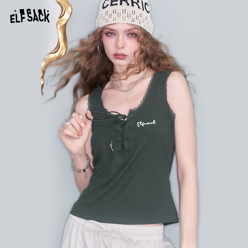 妖精的口袋蕾丝花边白色修身吊带女2025夏新款设计感背心无袖上衣