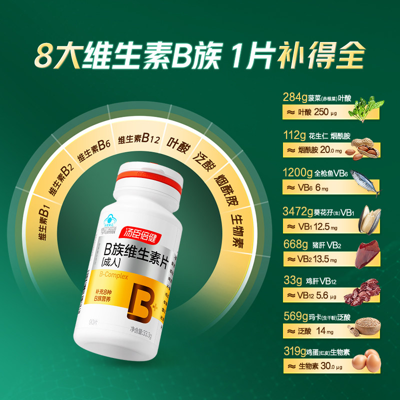 汤臣倍健维生素b族多种复合维生素B片b2b6b12b1男女代谢官方旗舰
