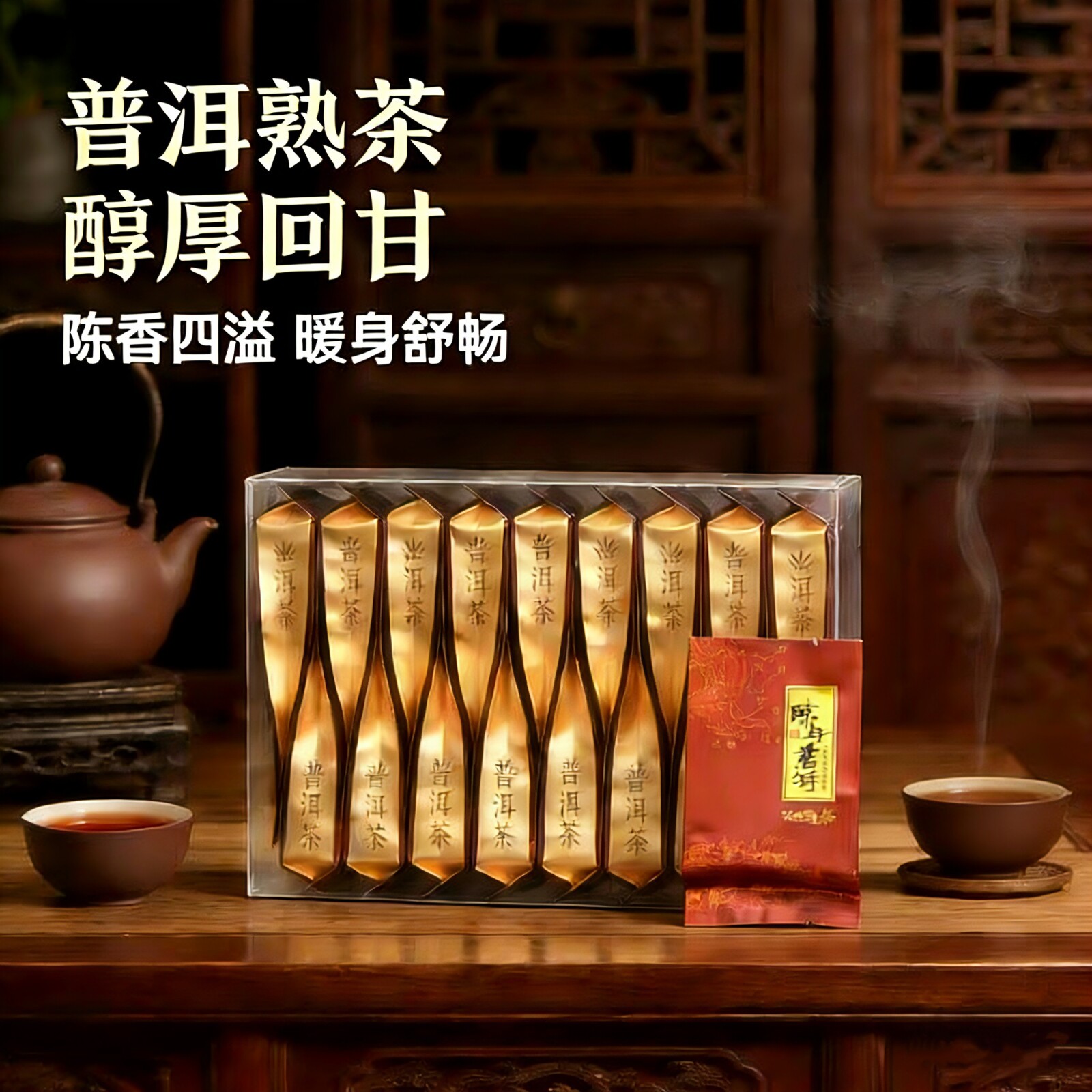 宫明茶叶 云南普洱茶熟茶糯米香小金砖普洱熟茶小圆饼320克礼盒装