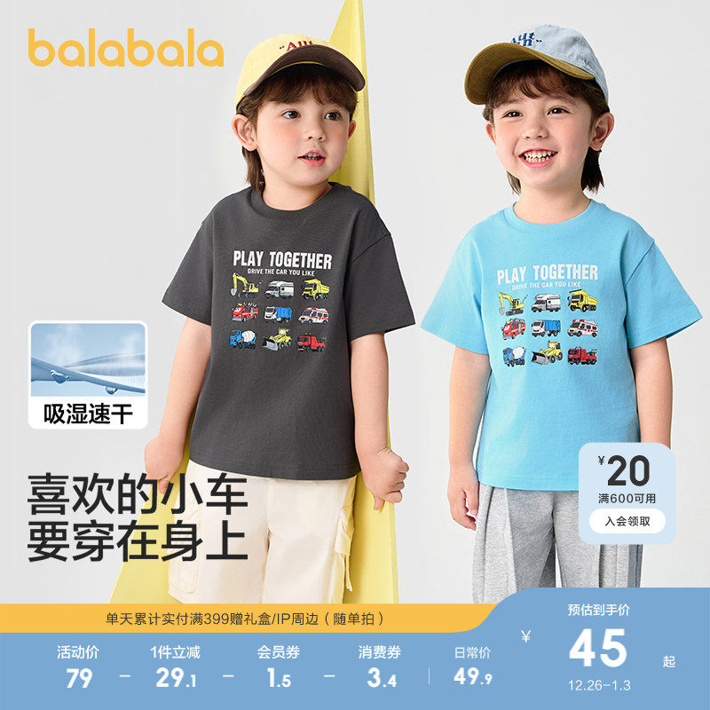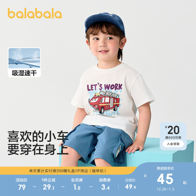 巴拉巴拉童装儿童t恤纯棉短袖上衣男童2025新款春夏装吸湿速干潮