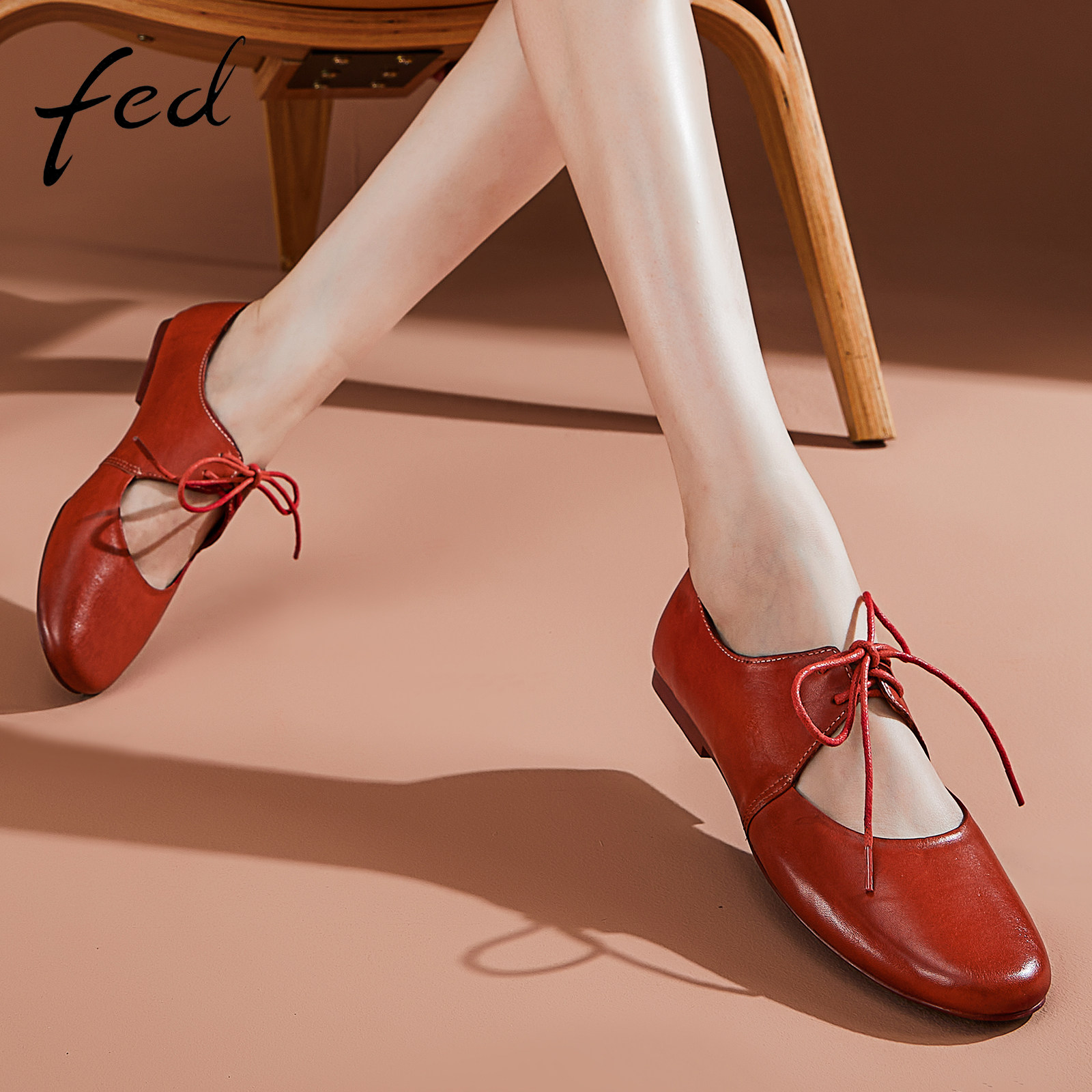 【水洗马皮】fed圆头单鞋秋季新款女鞋红色玛丽珍鞋D0827-ZFA005