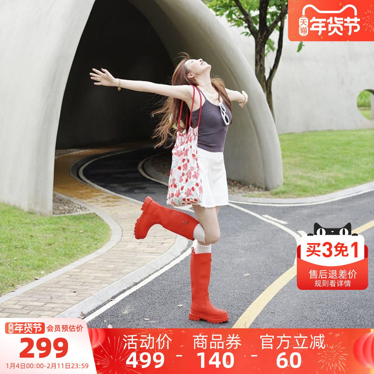 骆驼女鞋雨靴经典英伦户外休闲防水防滑骑士靴露营涉水长筒靴雨鞋