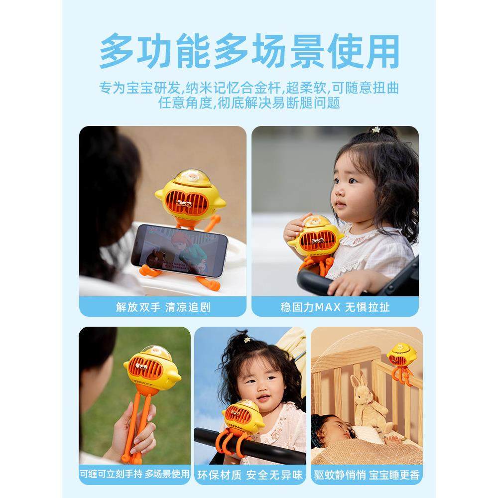 【内置驱蚊】慕苒婴儿车风扇无叶八爪鱼推车宝宝夹子吹辅食桌面便