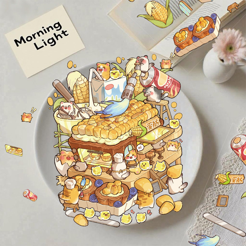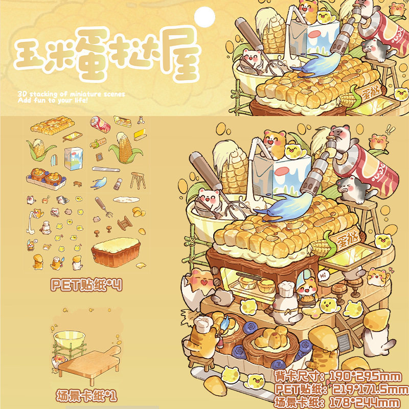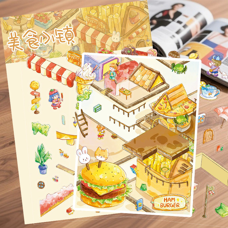 美食系列大尺寸造景贴纸解压免裁剪微缩立体小屋手工diy场景贴画