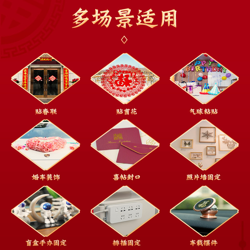 对联专用双面贴透明无痕高粘度自粘固r定神器多功能春联婚庆婚车