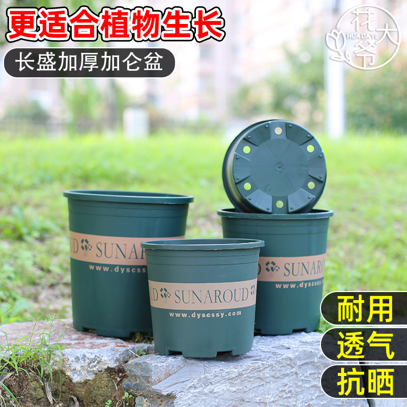 简约圆形塑料树脂花盆绿植盆栽多肉植物专用耐用加厚不闷根加仑盆