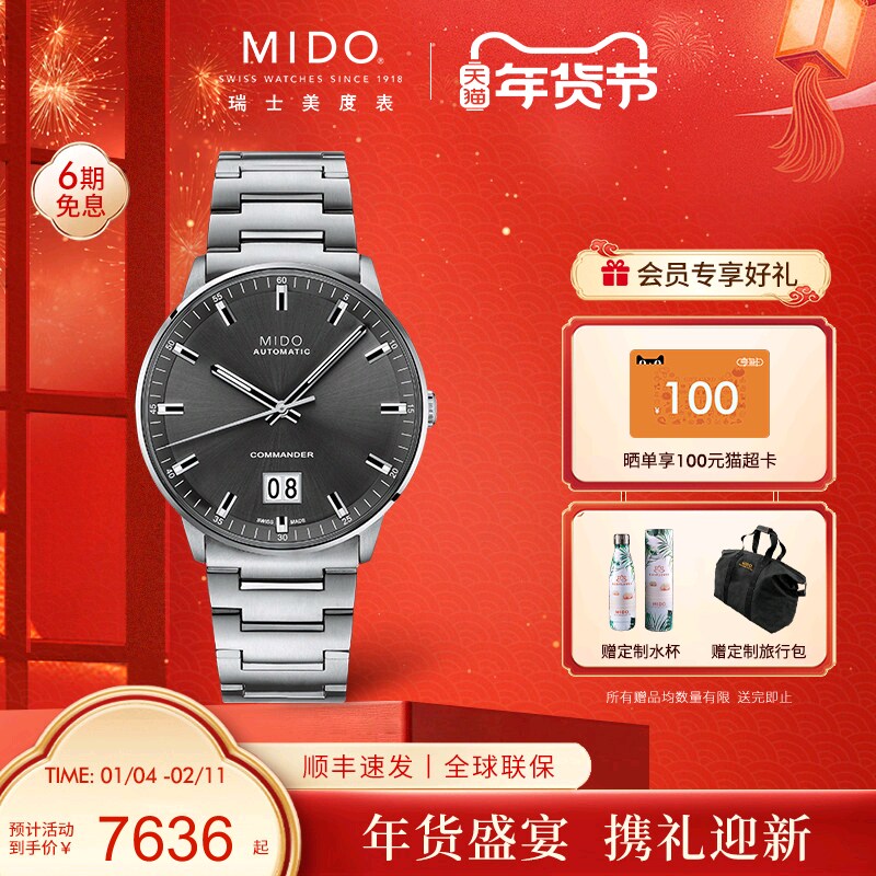 Mido美度手表男士全自动机械表指挥官大日历夜光礼物男表钢带腕表
