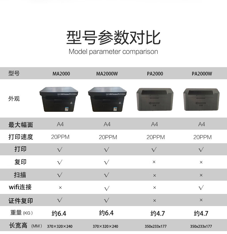 Kyocera/京瓷ma2000/2000W商用家用办公激光黑白打印一体机PA2000