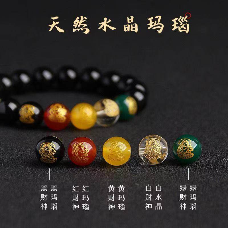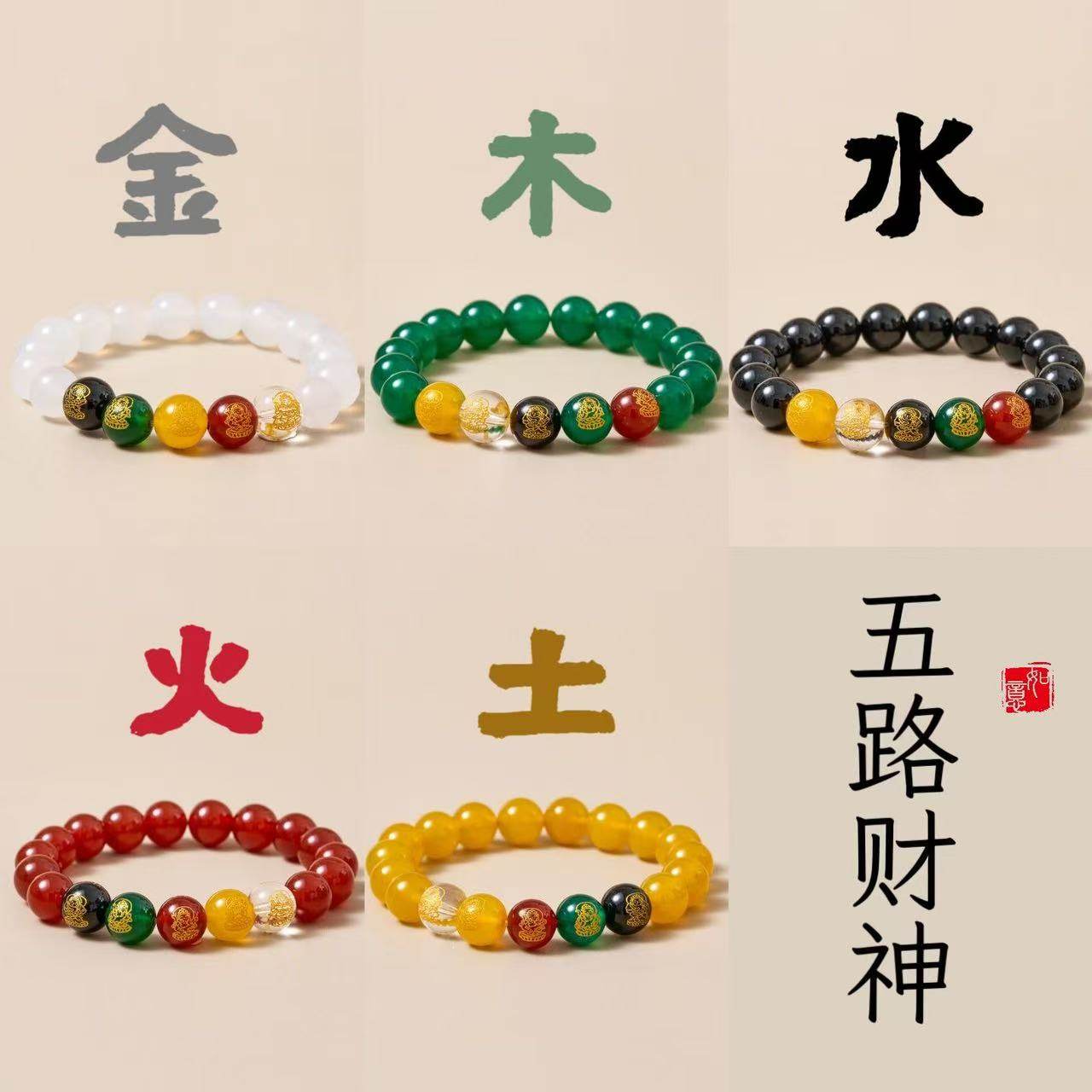 天然玛瑙水晶五行五路财神手串五行互补平衡手链珠礼物金木水火土