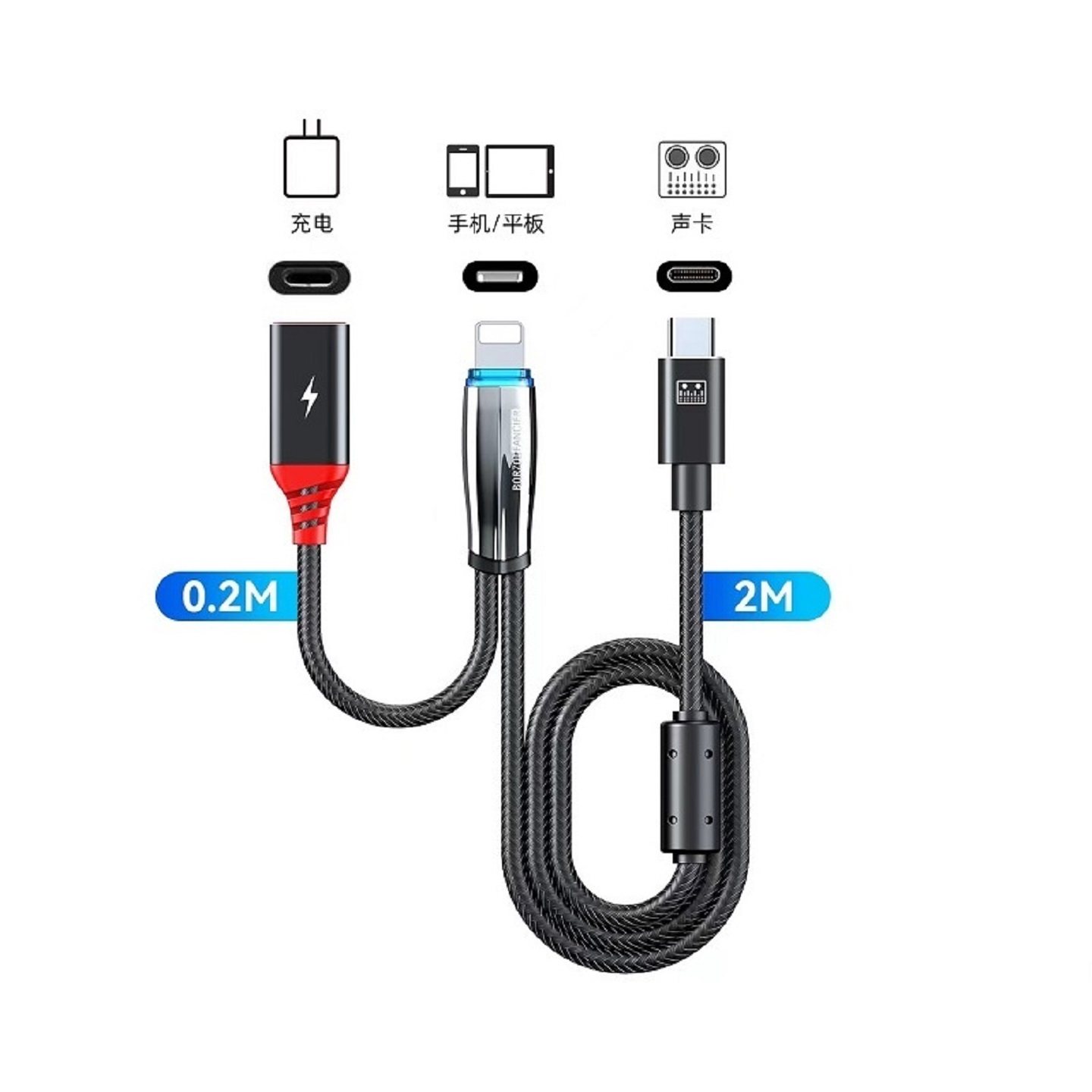 超级快充三合一数据线通用充电线适用苹果荣耀华为OPPO小米VIVO手机通用车载一拖三数据线透明芯片type-c带灯