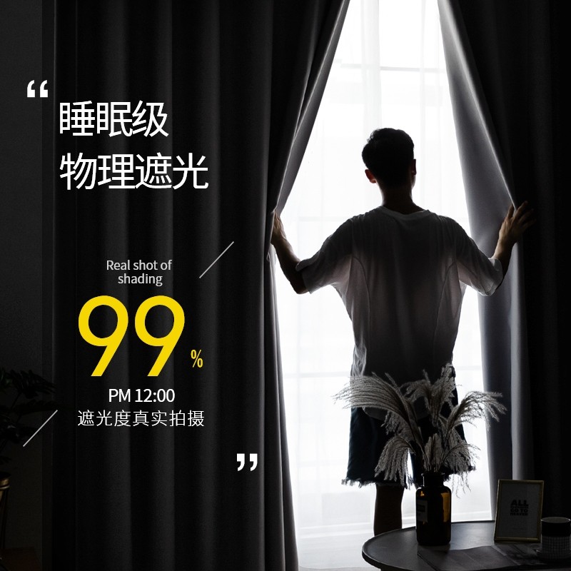遮光窗帘布2025新款挂钩式全隔热遮阳卧室免打孔安装出租房滑轨