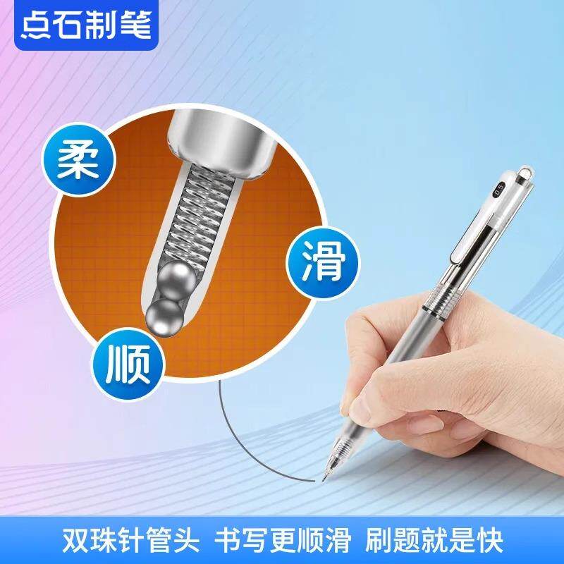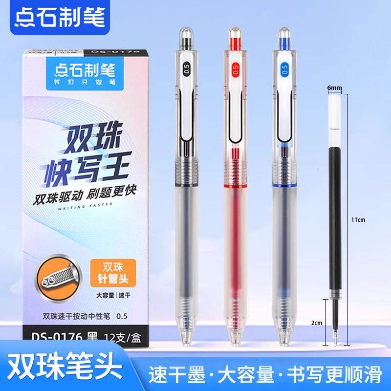 点石制笔DS0176快写王按动双珠全针管刷题批改中性笔大容量红笔