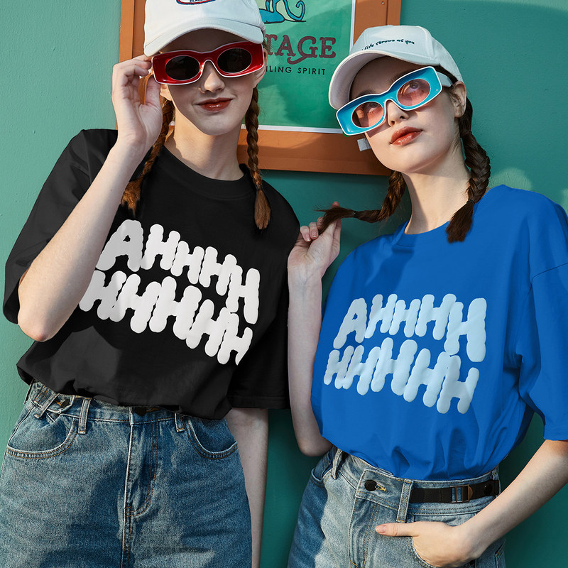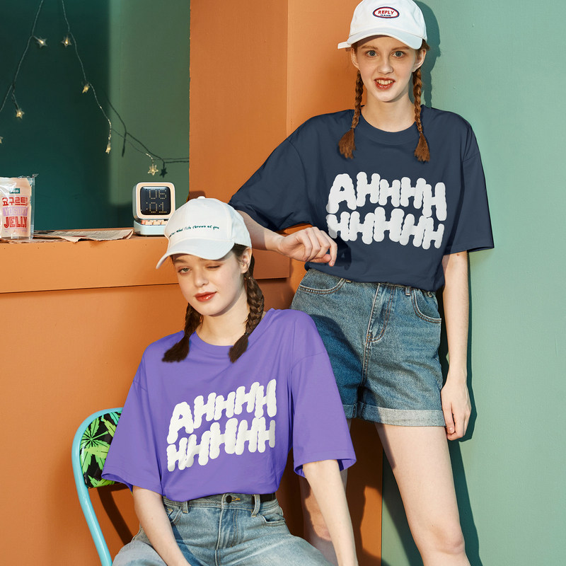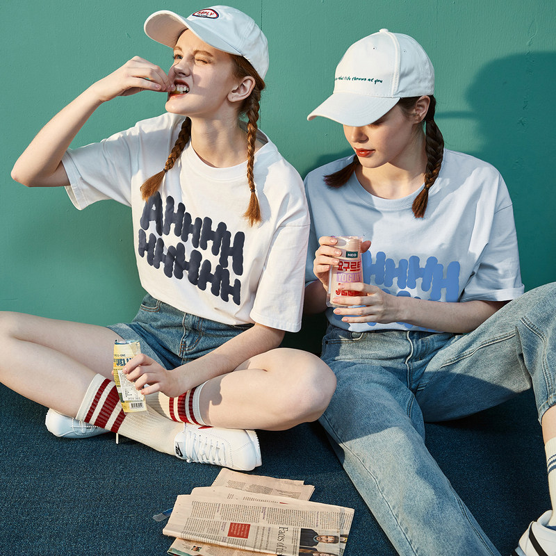 女情侣装唐狮圆领上衣服潮T恤休闲AHHH~短袖t恤女夏装宽松ins半袖