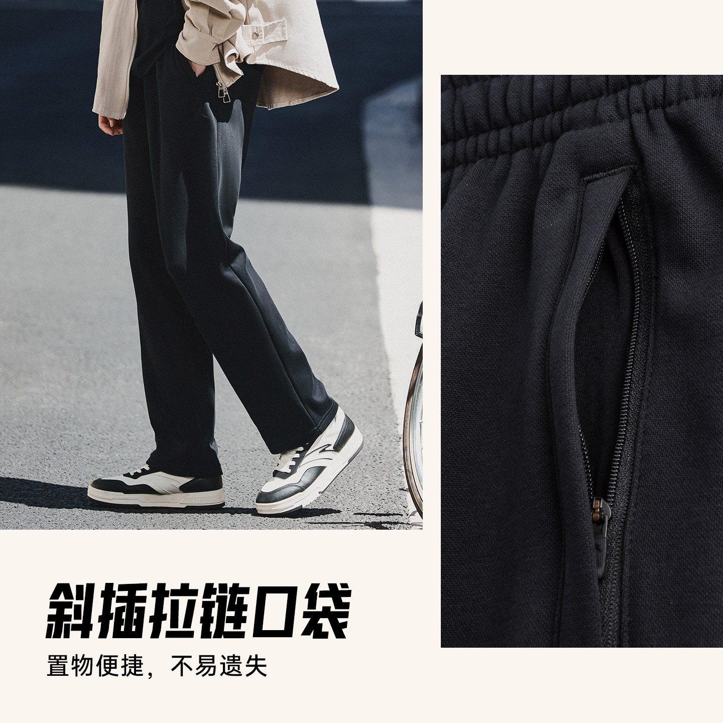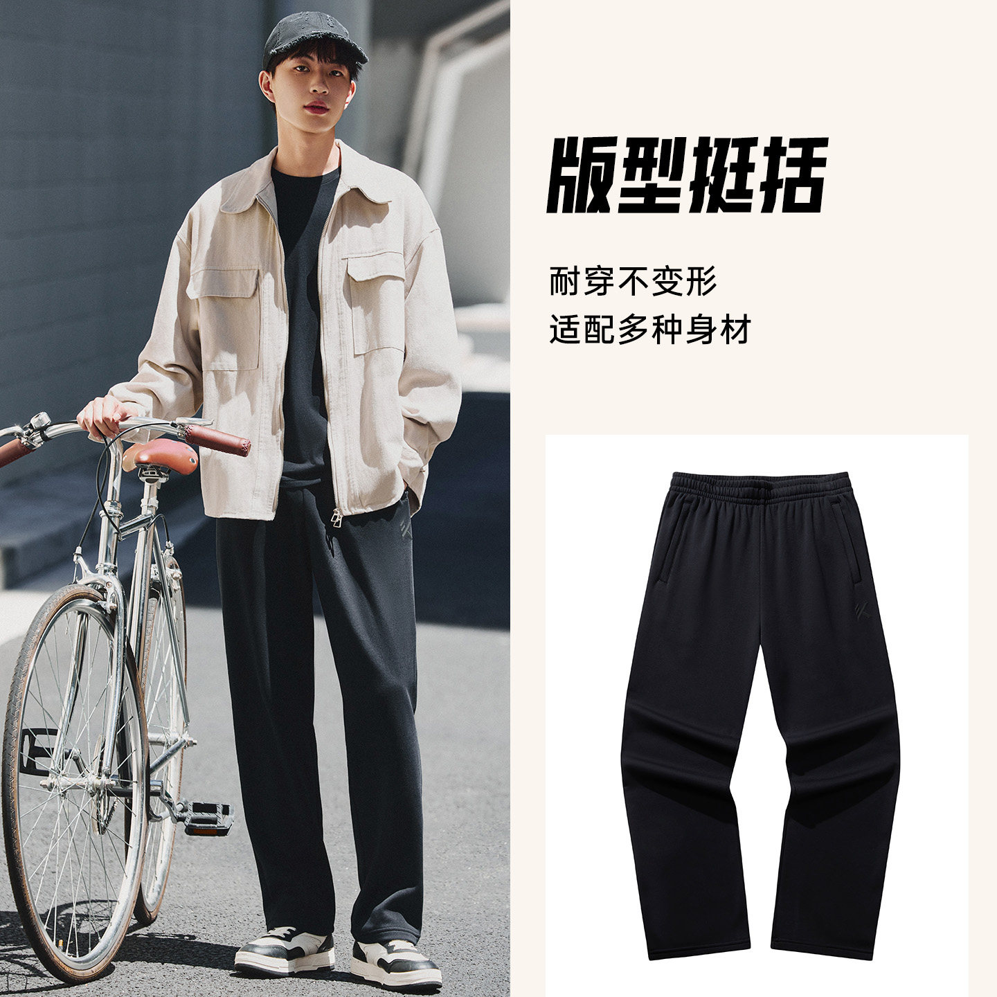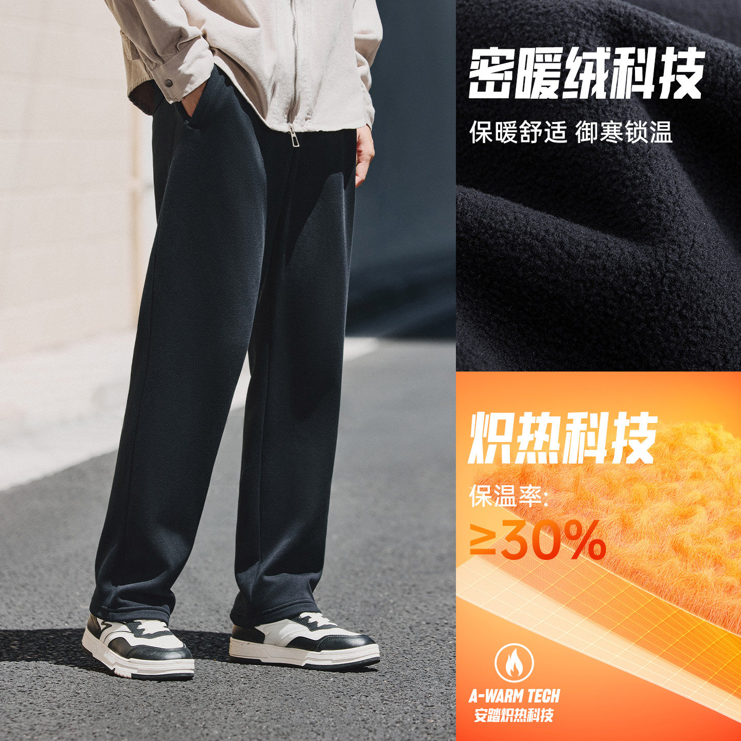 安踏KT运动长裤男士冬季新款加绒保暖阔腿直筒裤子卫裤152541302P
