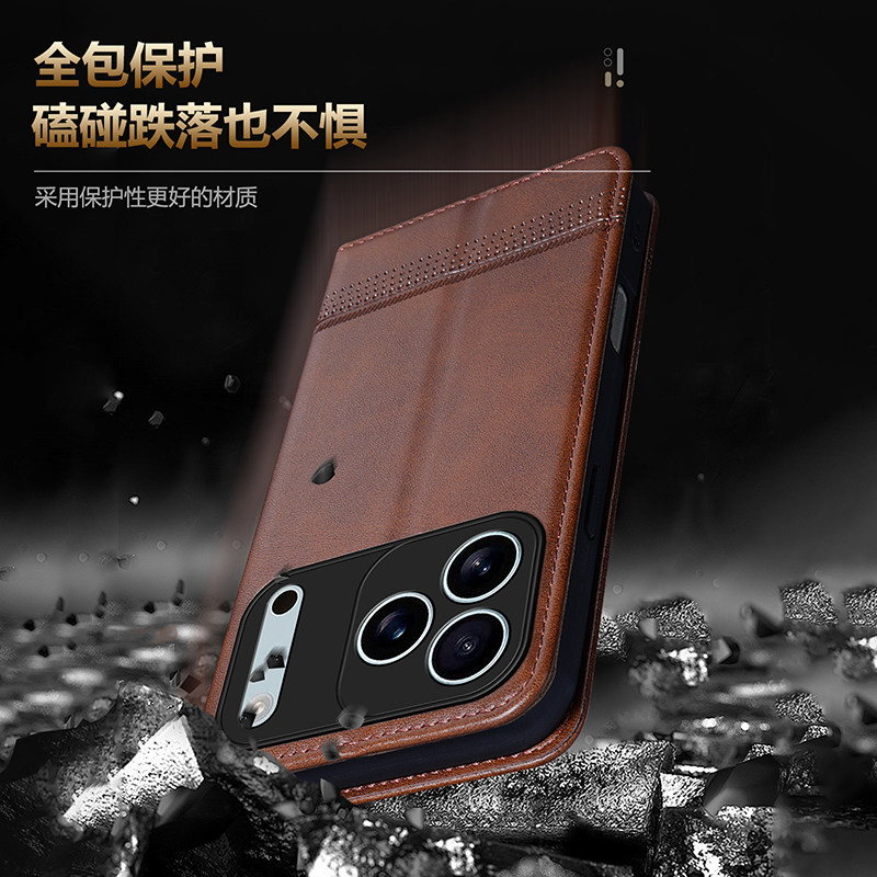 适用于 苹果17air手机壳前后对吸全包iphone17promax保护皮套真皮钱包款5G镜头防摔i17pro软壳男高档商务牛皮