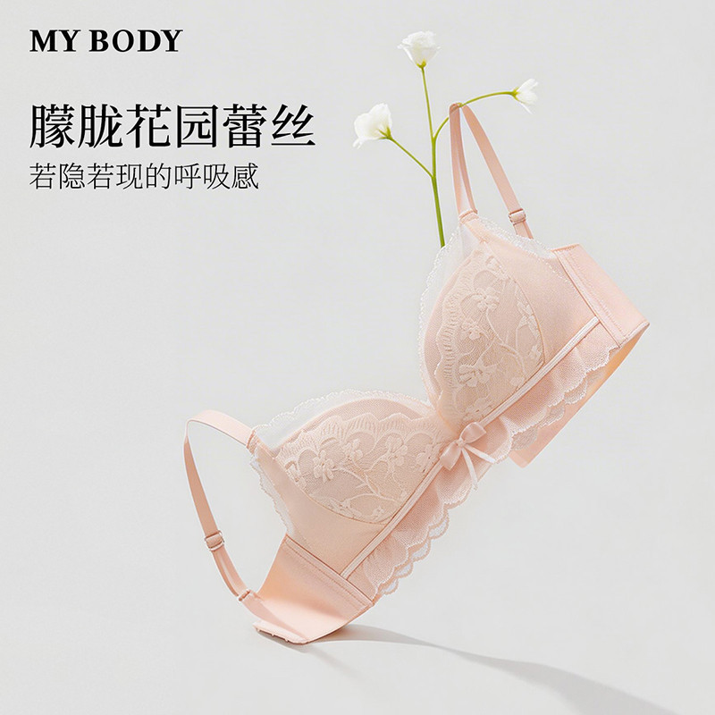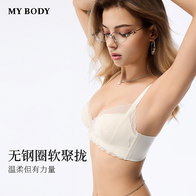 MYBODY商场同款新款内衣聚拢小胸纯欲蕾丝提花网纱胸罩无钢圈文胸