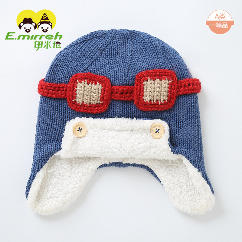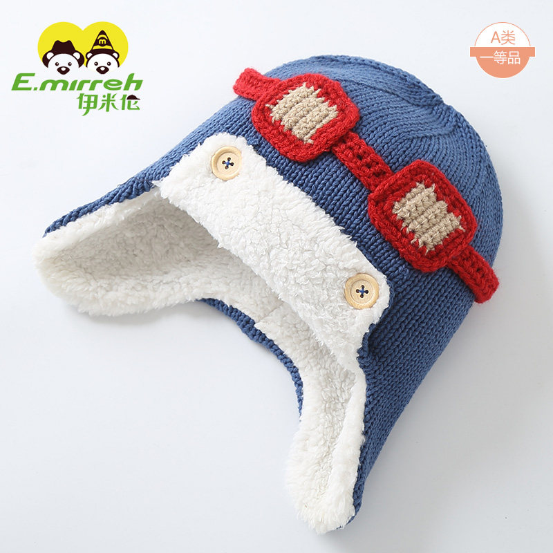 伊米伦宝宝护耳帽冬季男孩帽子针织帽毛线帽韩版儿童保暖套头帽子