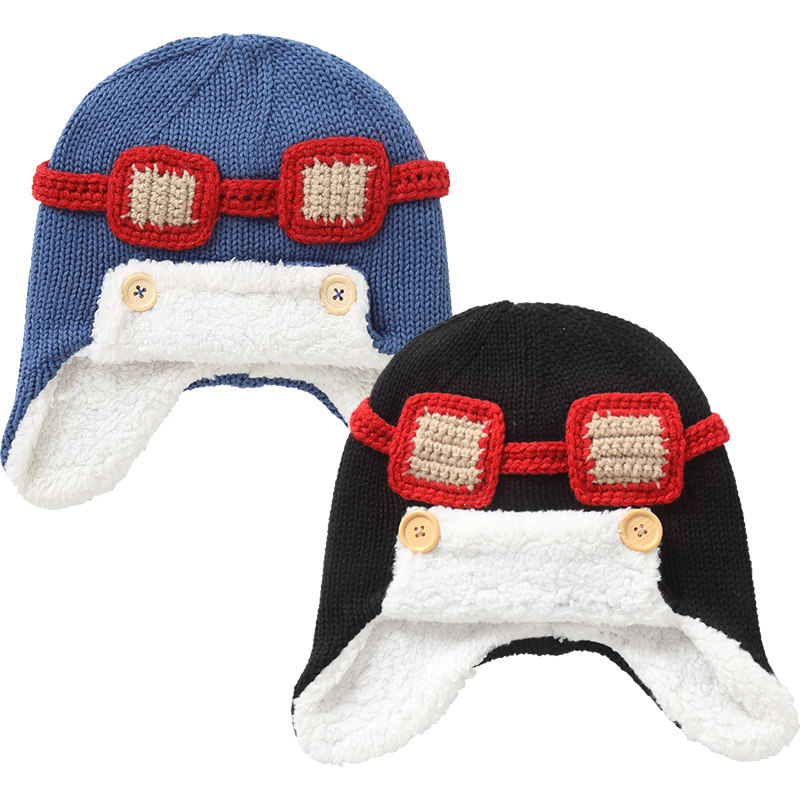 hugz儿童帽子男孩女孩保暖针织毛线帽秋冬季户外护耳防风熊仔帽子