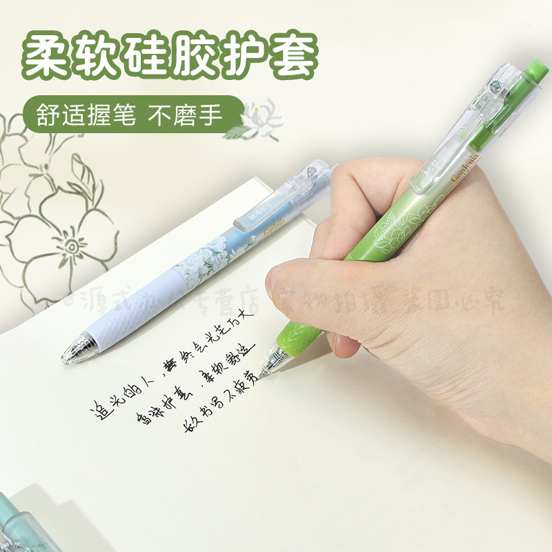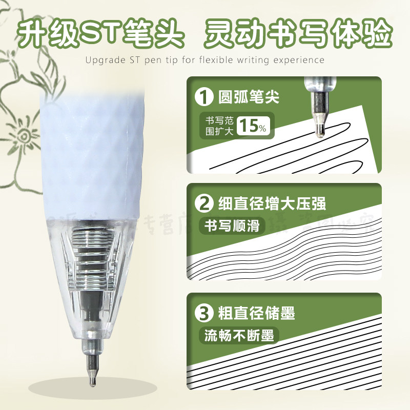 晨光栀子花三倍书写按动中性笔学生用st大容量速干刷题笔ST笔头0.5高颜值ins考试专用刷题黑水笔刷题笔J9018