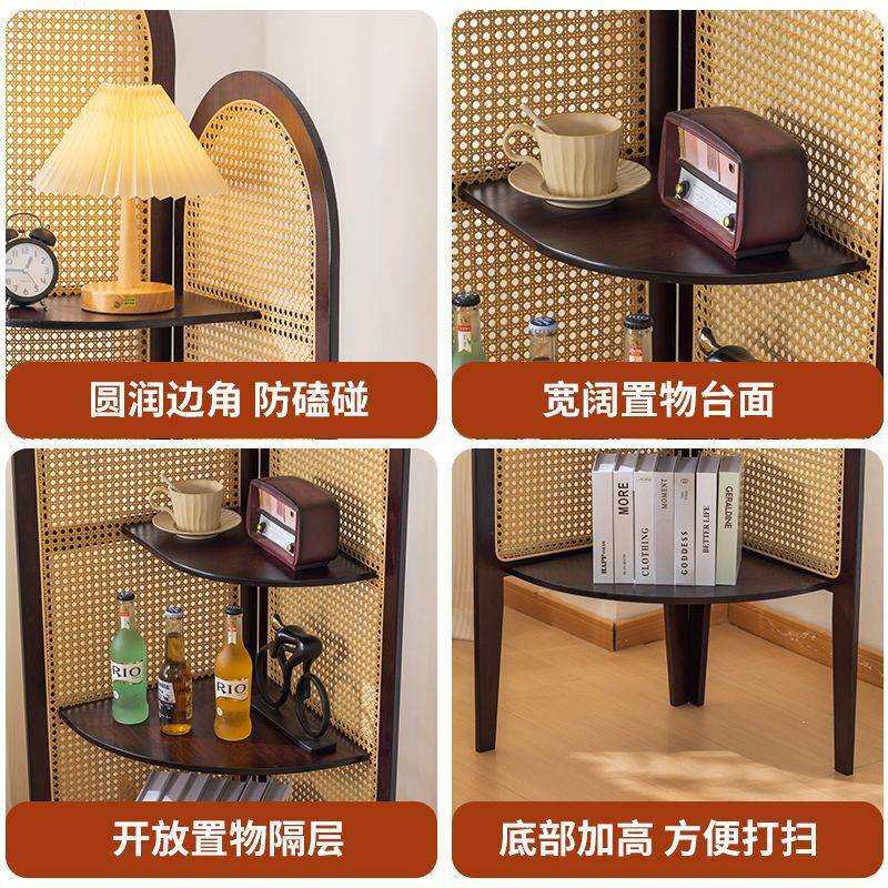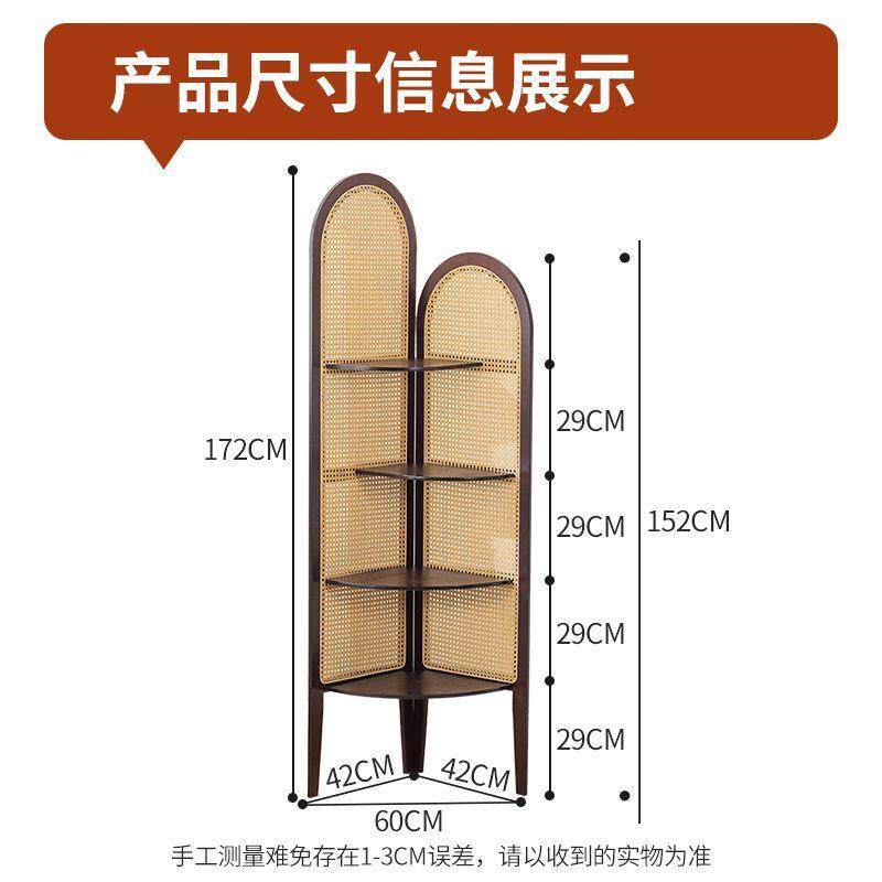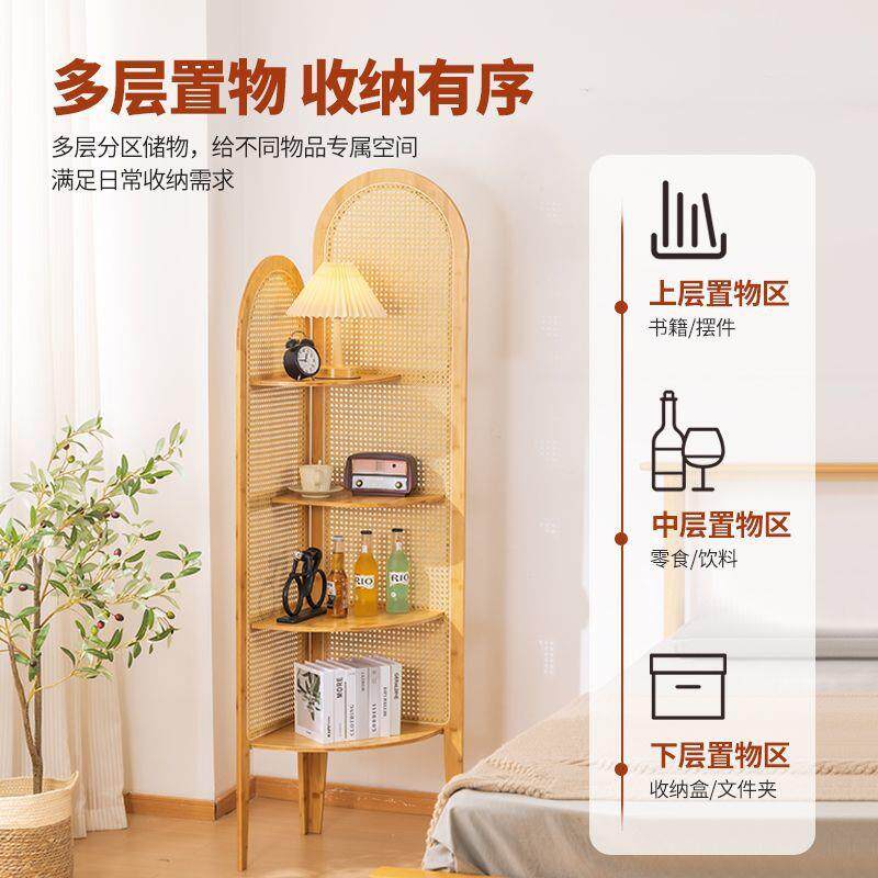 新中式转角柜置物架客厅卧室阳台三角柜藤编书架落地花架拐角架子