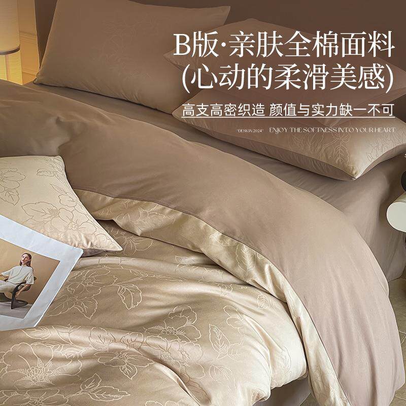 2025新款冬季全棉床上四件套贡缎轻奢纯棉被套床单三件套床品套件
