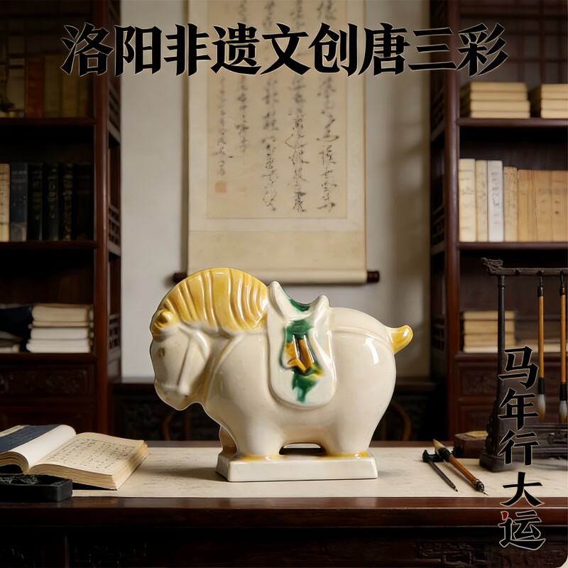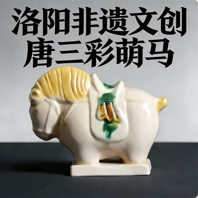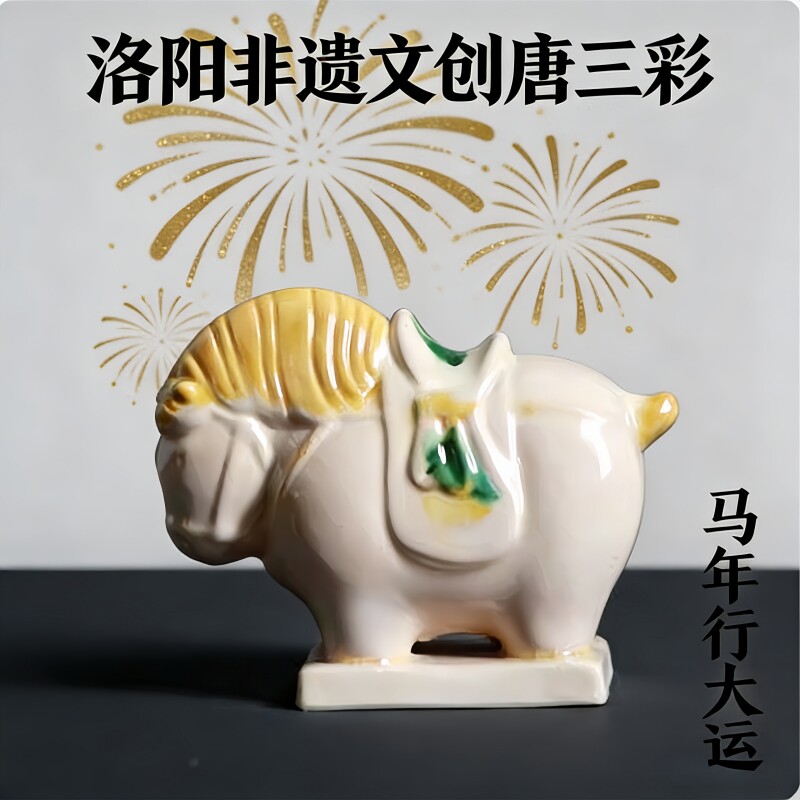 洛阳唐三彩陶瓷佛系胖马文创艺术品手办小胖马旅游伴手桌面装饰品