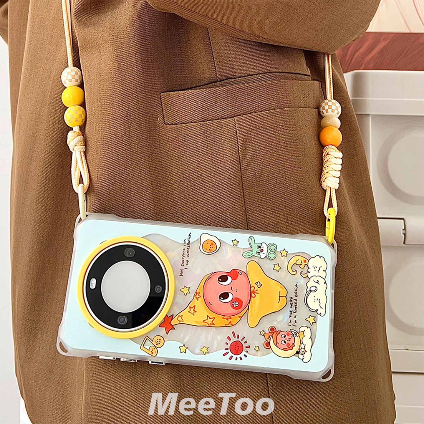 卡通星人适用于华为mate80pro手机壳挂绳斜挎VIVOX200ULTRA背带斜挎苹果17P手提腕带保护壳小米14ultra硬壳