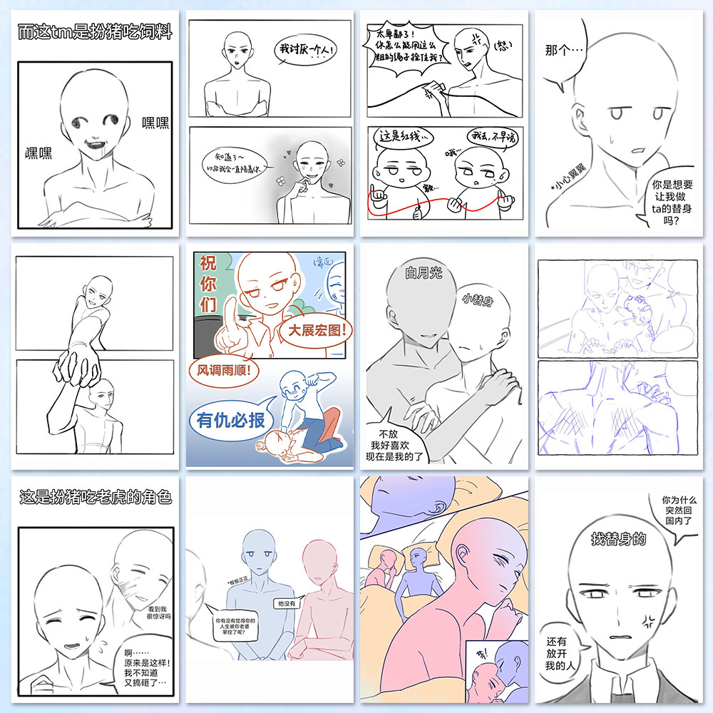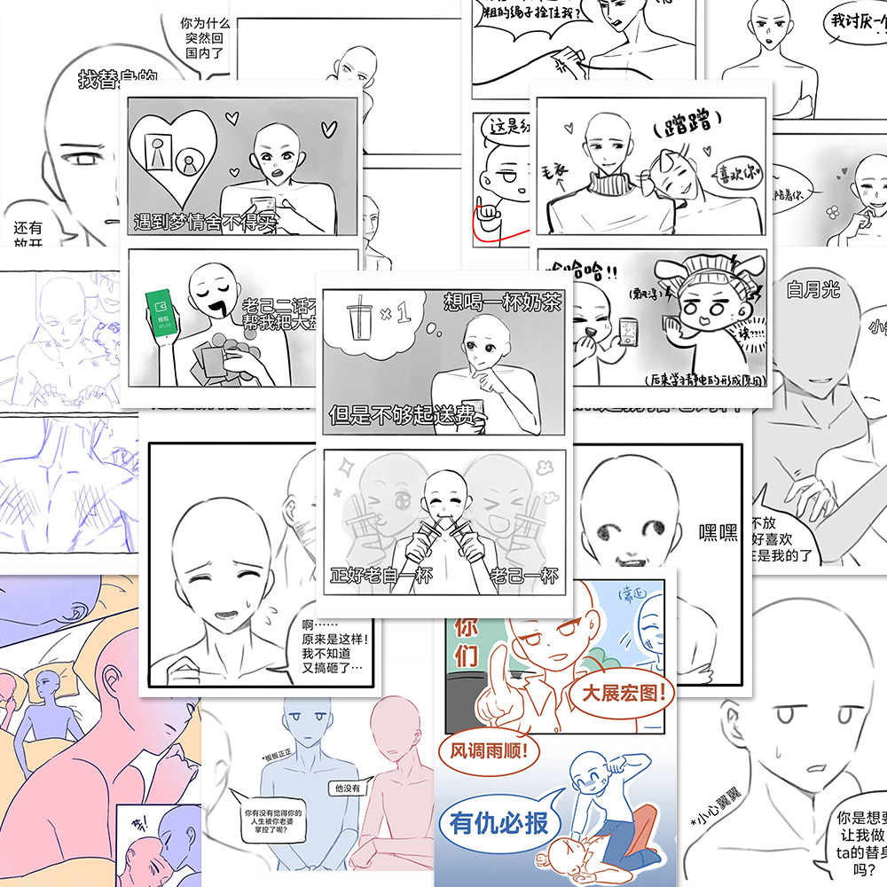 192张代餐模板贴纸创意趣味热门二次元双人绘画素材参考diy装饰贴
