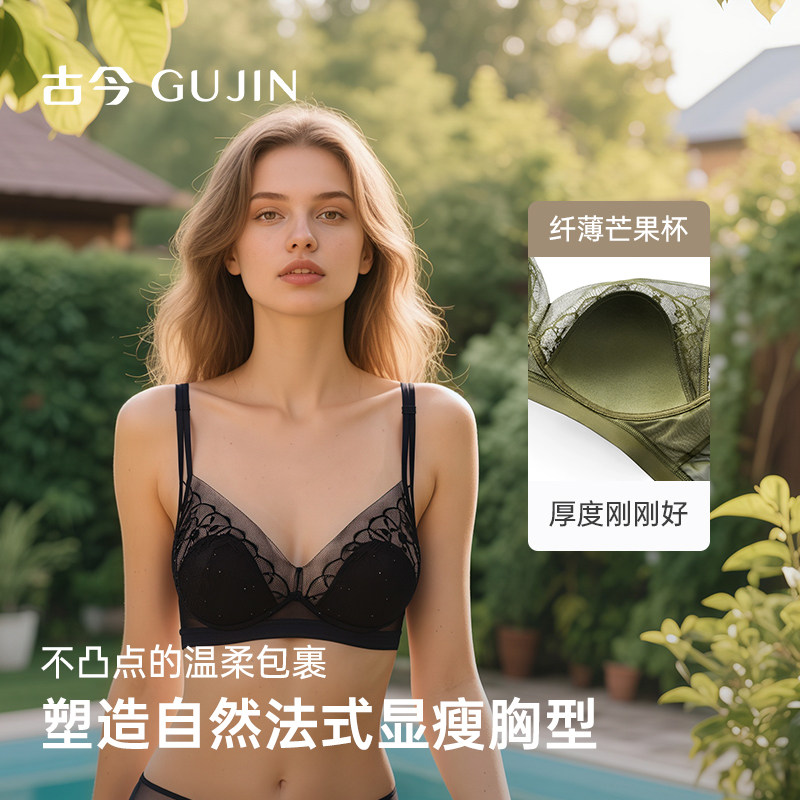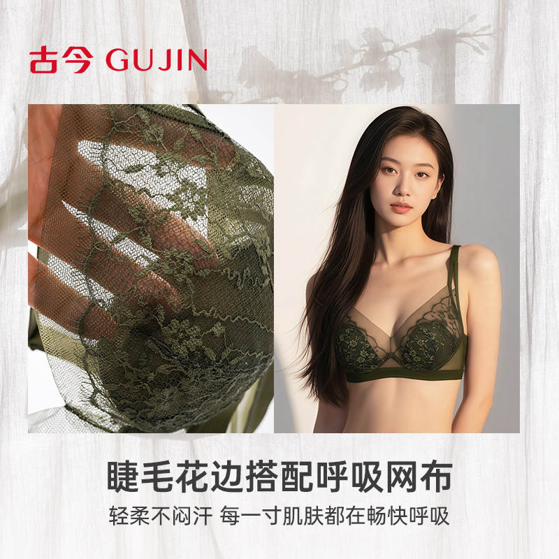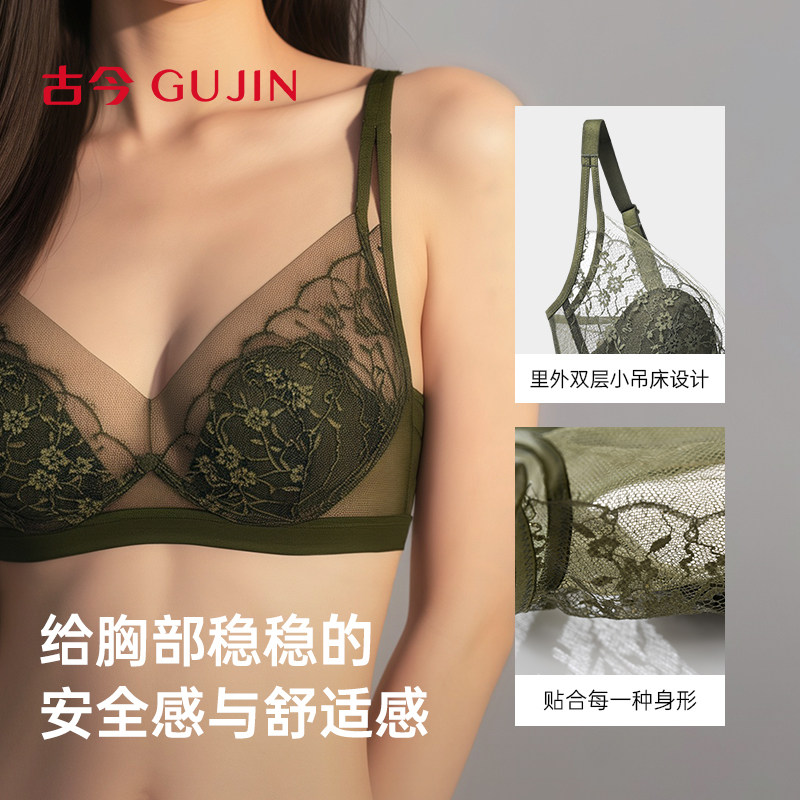 古今内衣女大胸显小显瘦无钢圈上托蕾丝文胸罩透气透气45g侧收