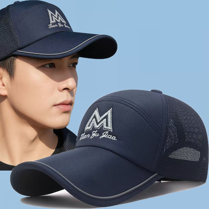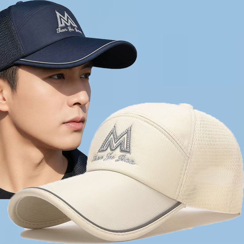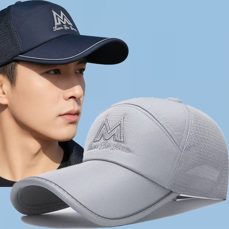 长男士帽子夏季户外遮阳防晒太阳帽透气棒球帽钓鱼网帽鸭舌帽折叠