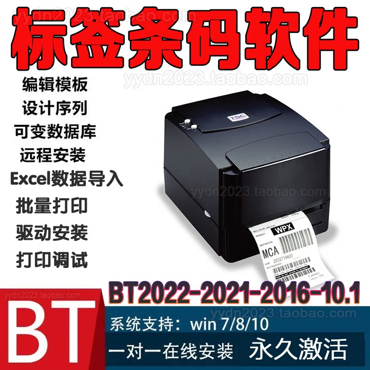 条码标签打印机软件不干胶吊牌水洗唛二维码编辑BT2022R8安装激活