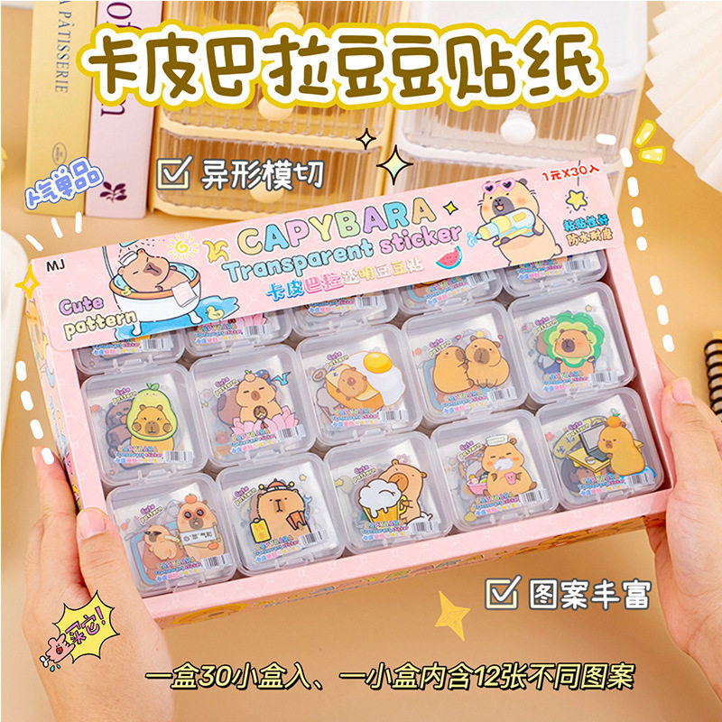 创意儿童小礼品卡通可爱卡皮巴拉豆豆盒装贴纸学生礼物diy手帐贴