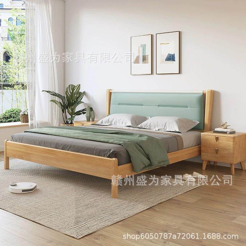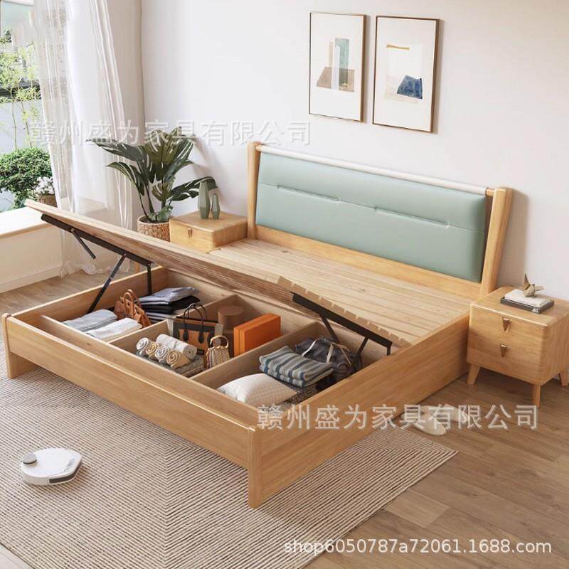 北欧实木床橡胶木小户型组合原木色双人位木质1.8m婚床储物高箱