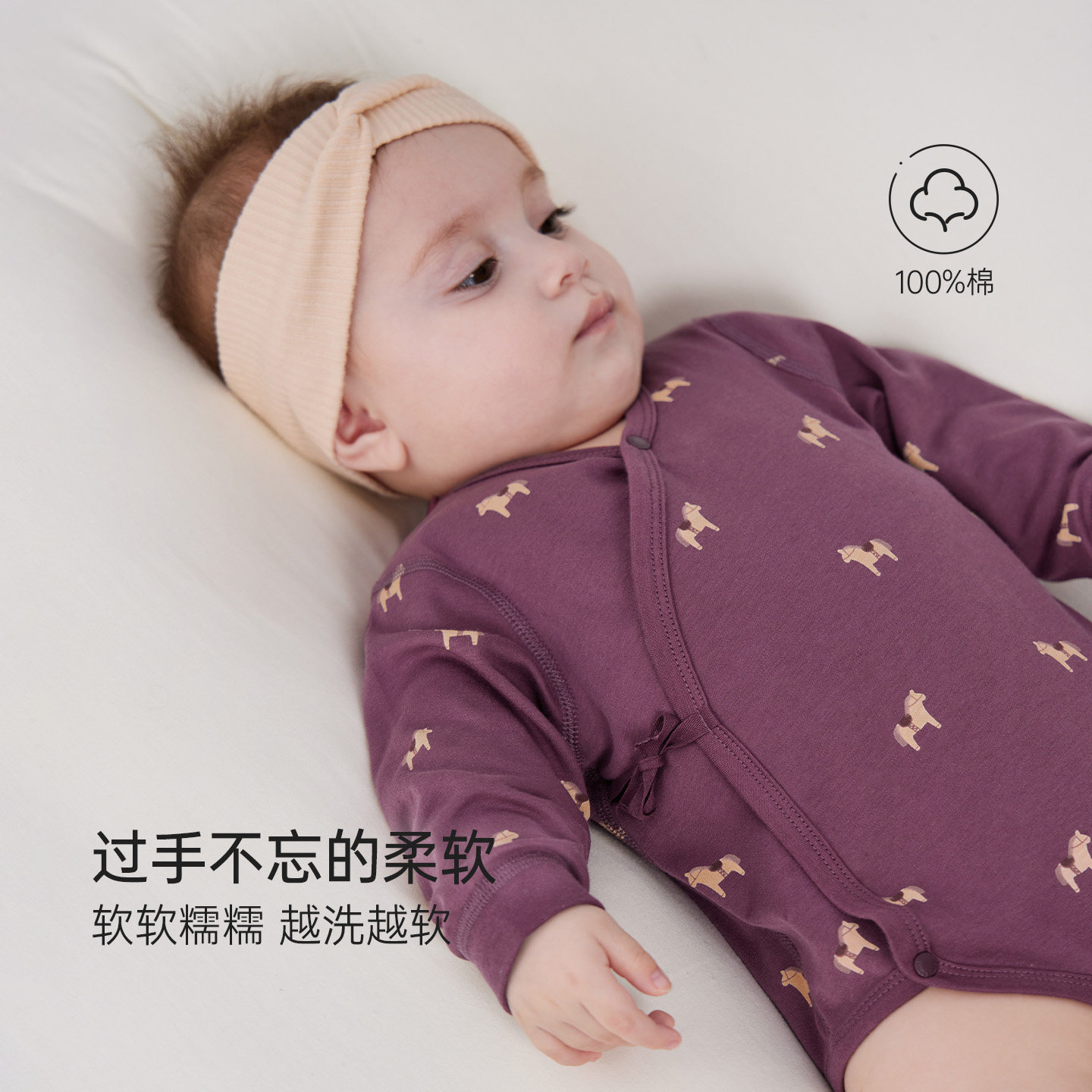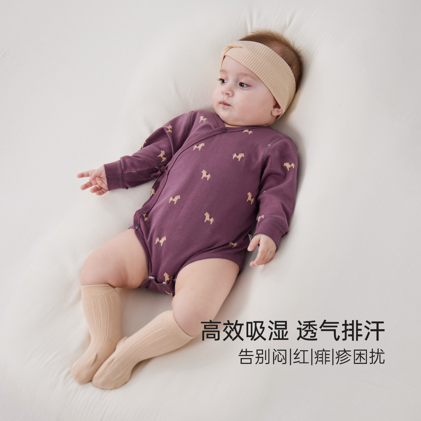 babylove【安心柔】婴儿包屁衣春秋新生儿纯棉宝宝马年三角哈衣