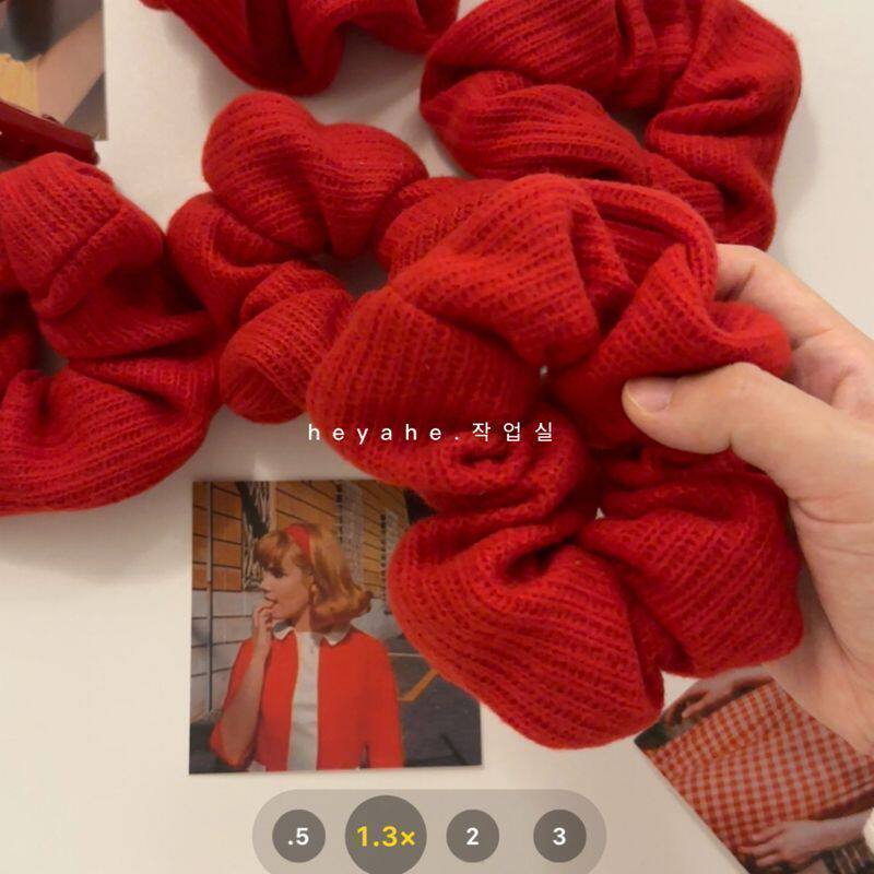 圣诞安可拉红气氛韩国ins红色毛线条纹大肠圈秋冬猪大肠发圈针织