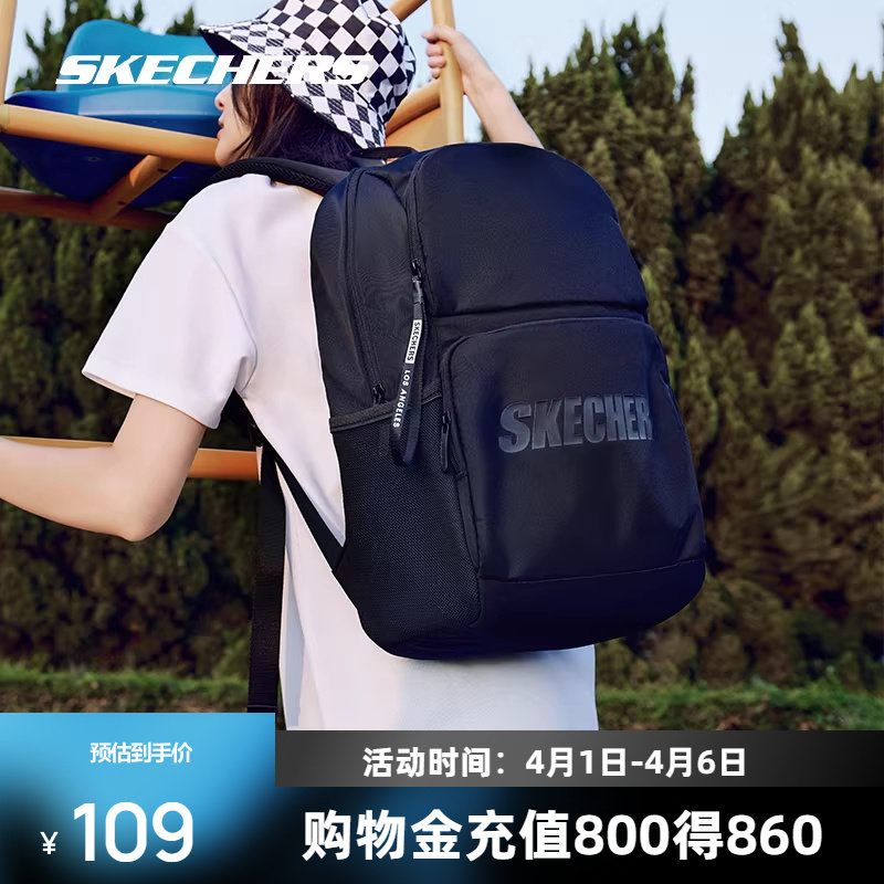 斯凯奇双肩包大容量简约旅行背包开学季百搭大学生运动休闲书包