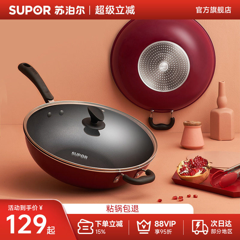 苏泊尔官方旗舰店不粘锅家用平底炒锅电磁炉燃气灶通用锅具炒菜锅
