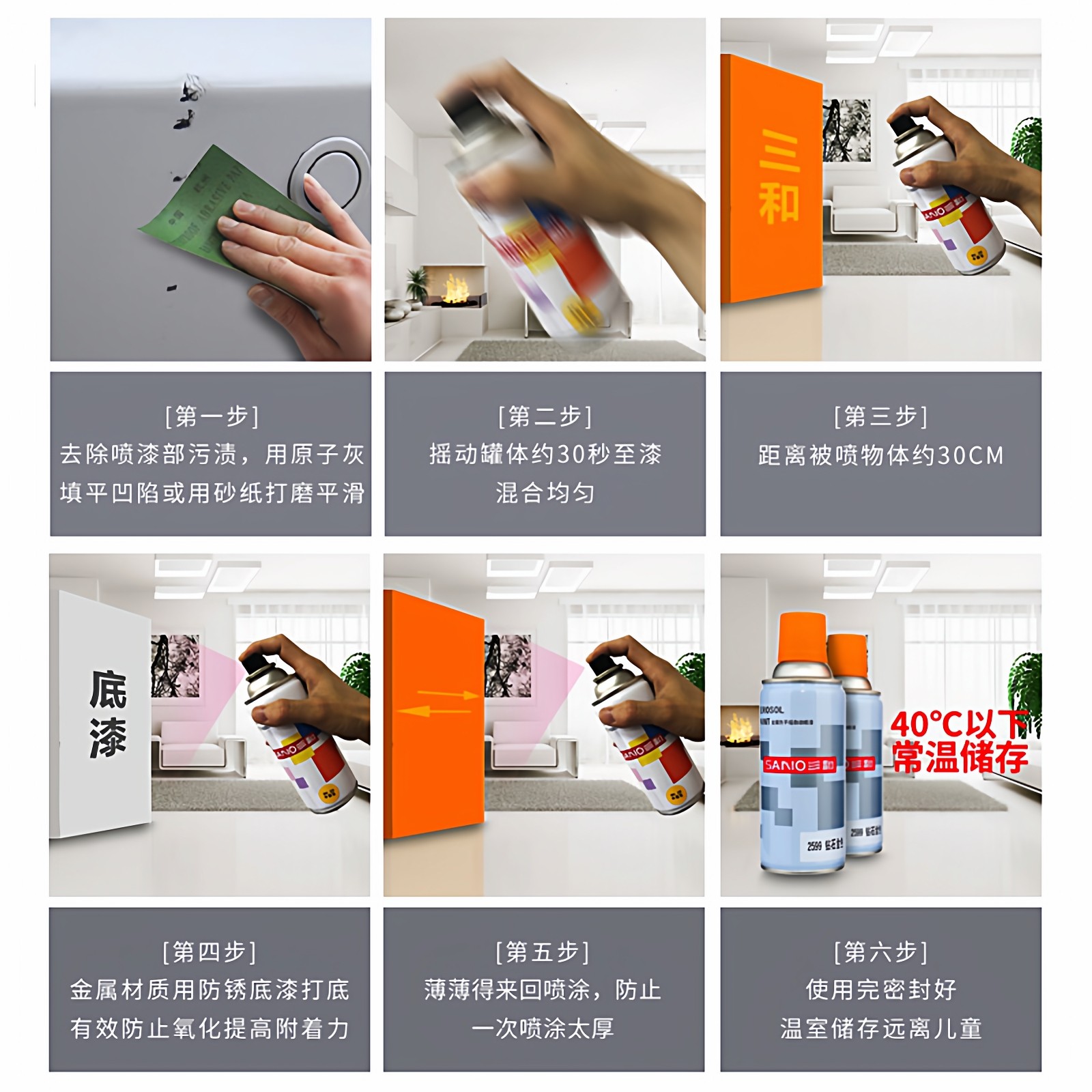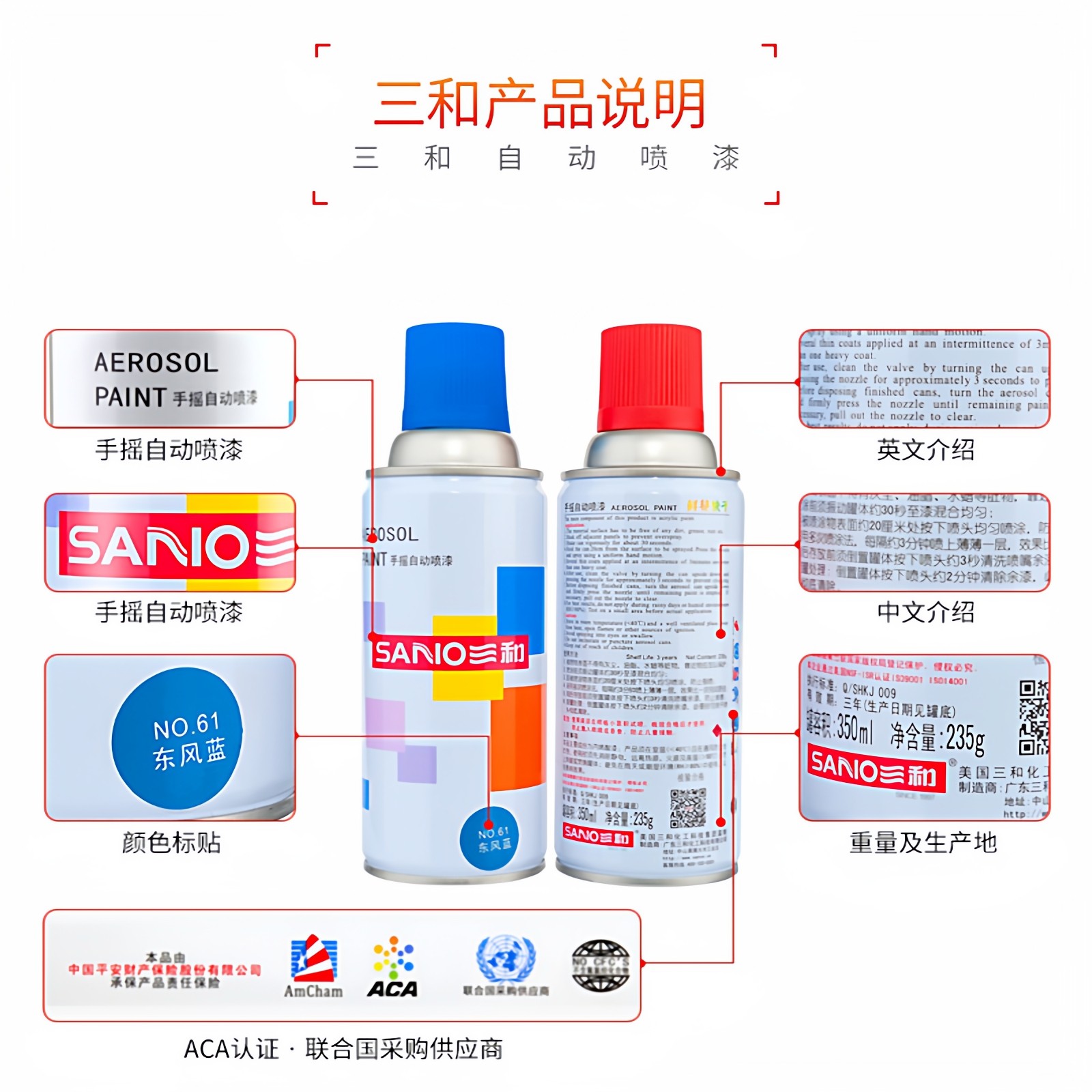 三和自喷漆手摇金属防锈金色银蓝涂鸦家具油漆sano