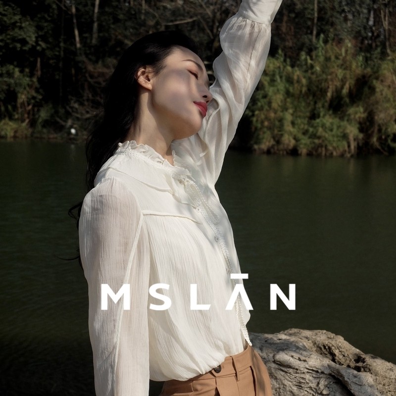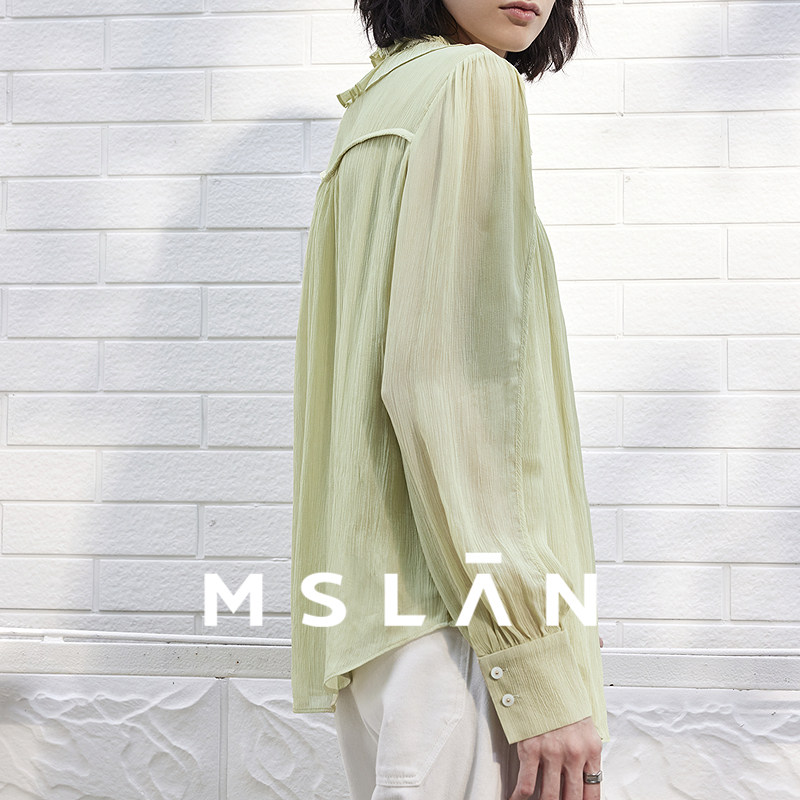 MSLAN心动浅春系雪纺衫 26春修身蕾丝荷叶边衬衣上衣女