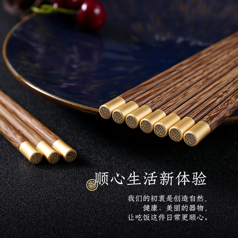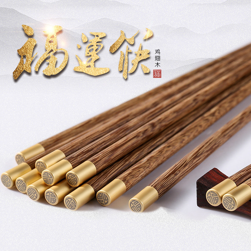 筷子家用高档抗菌防霉实木无漆无蜡轻奢高级感豪华福字鸡翅木筷子