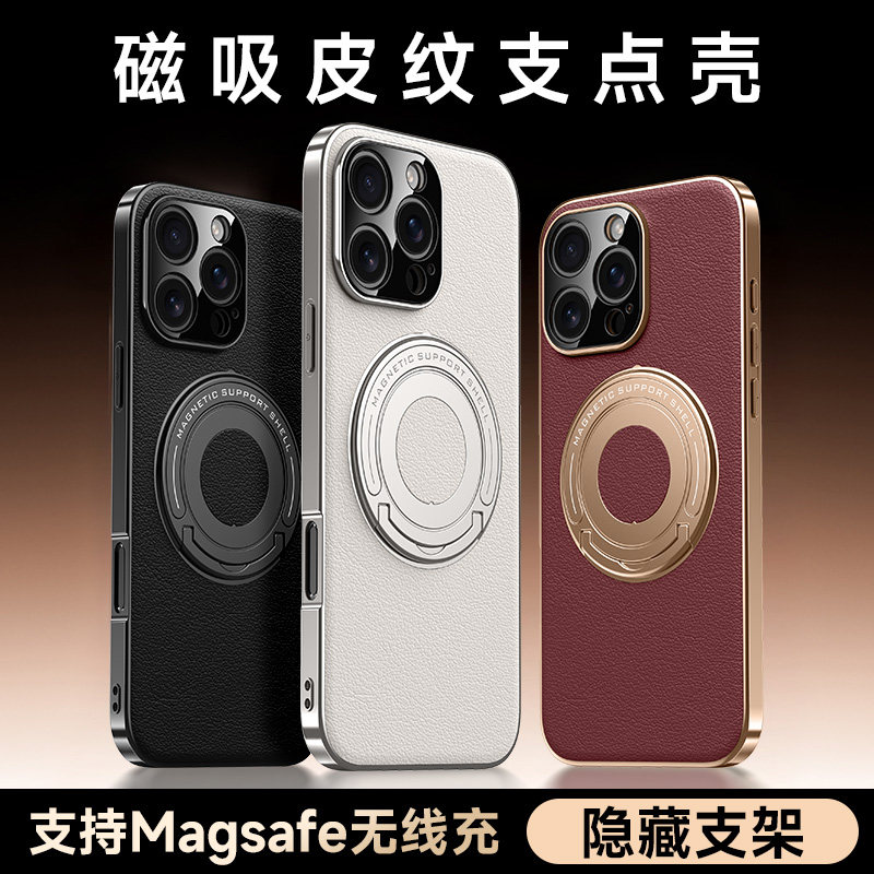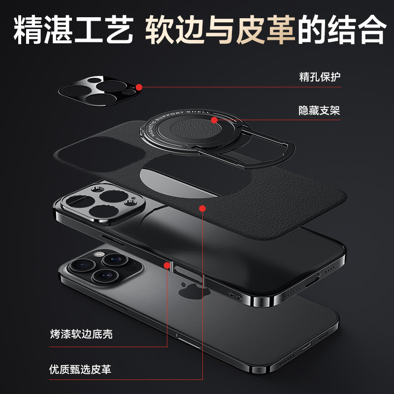 适用于iPhone13手机壳拉杆支架苹果16promax保护套吸磁i15pro全包14promax超薄防摔无线充i16pro软素皮时尚潮