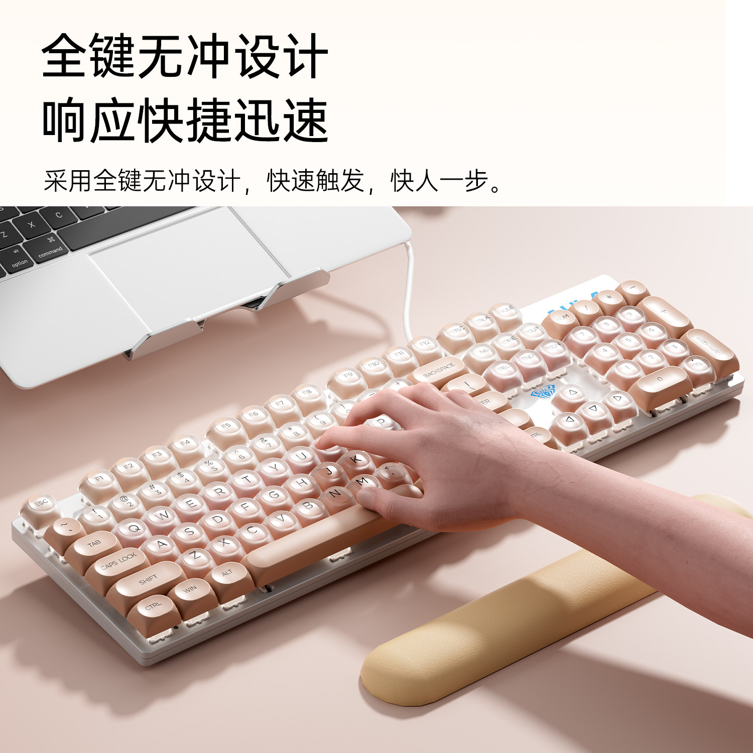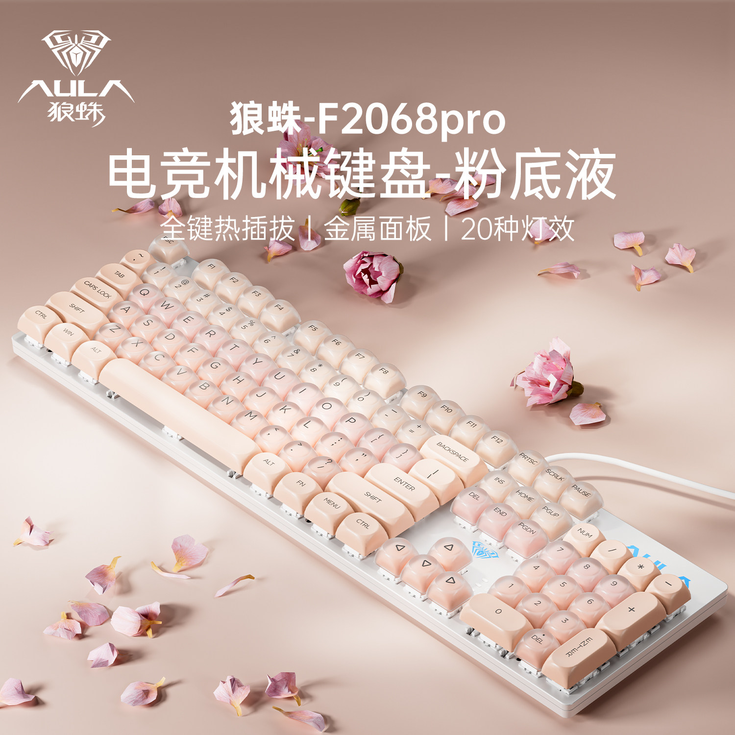 狼蛛F2068粉底液机械键盘有线青轴热插拔电竞游戏办公女生高颜值