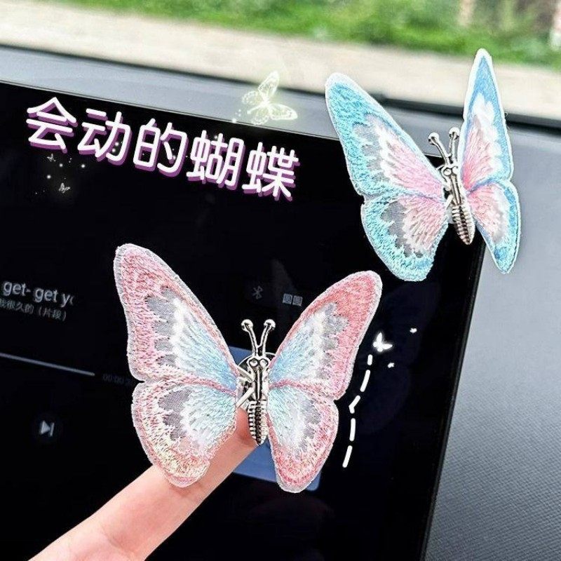 会动的蝴蝶汽车摆件车载车内饰品摆件中控台治愈系装饰品生动创意