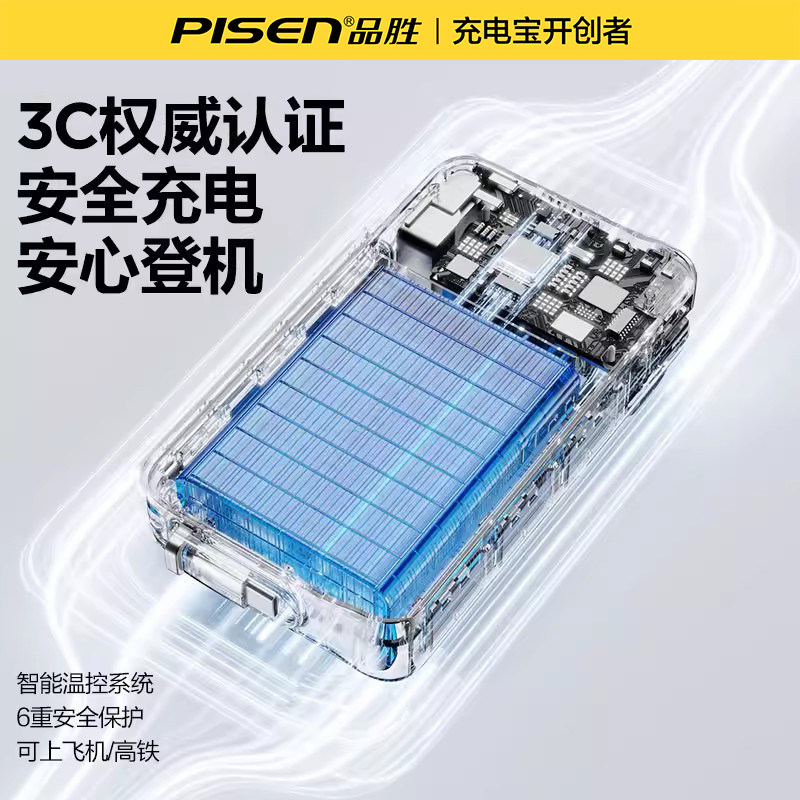 【充电宝3C认证】品胜20000毫安充电宝自带四线大容量超薄小巧便携政府补贴移动电源适用苹果17华为可上飞机