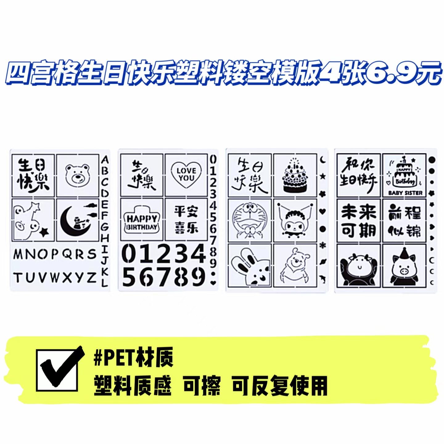 油画棒镂空模板生日快乐四宫格画框星星月亮模板手工diy生日礼物